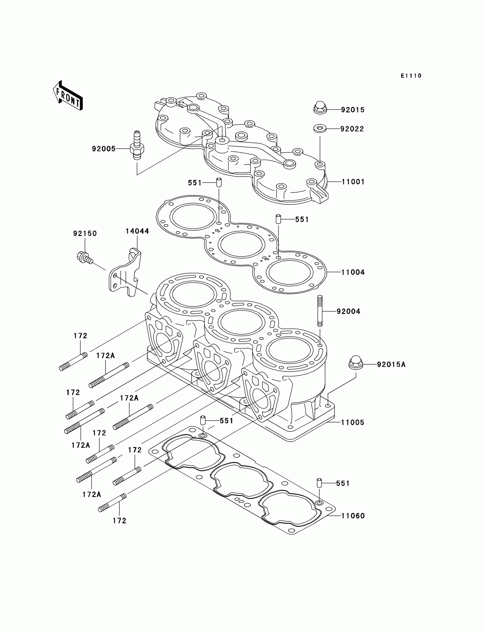 Kawasaki 1100 ZXi Cylinder Head/Cylinder Diagram