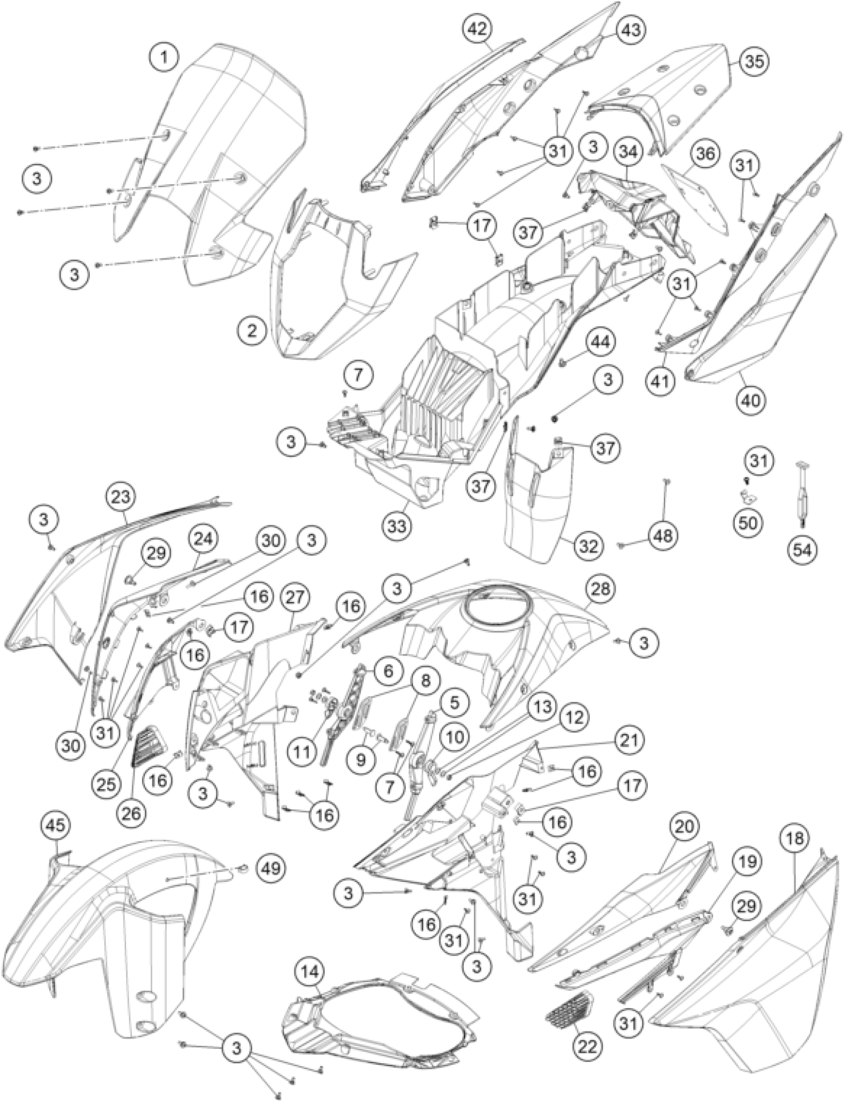 KTM 1190 ADV. ABS ORANGE WES. 2014 MASK, FENDERS Diagram