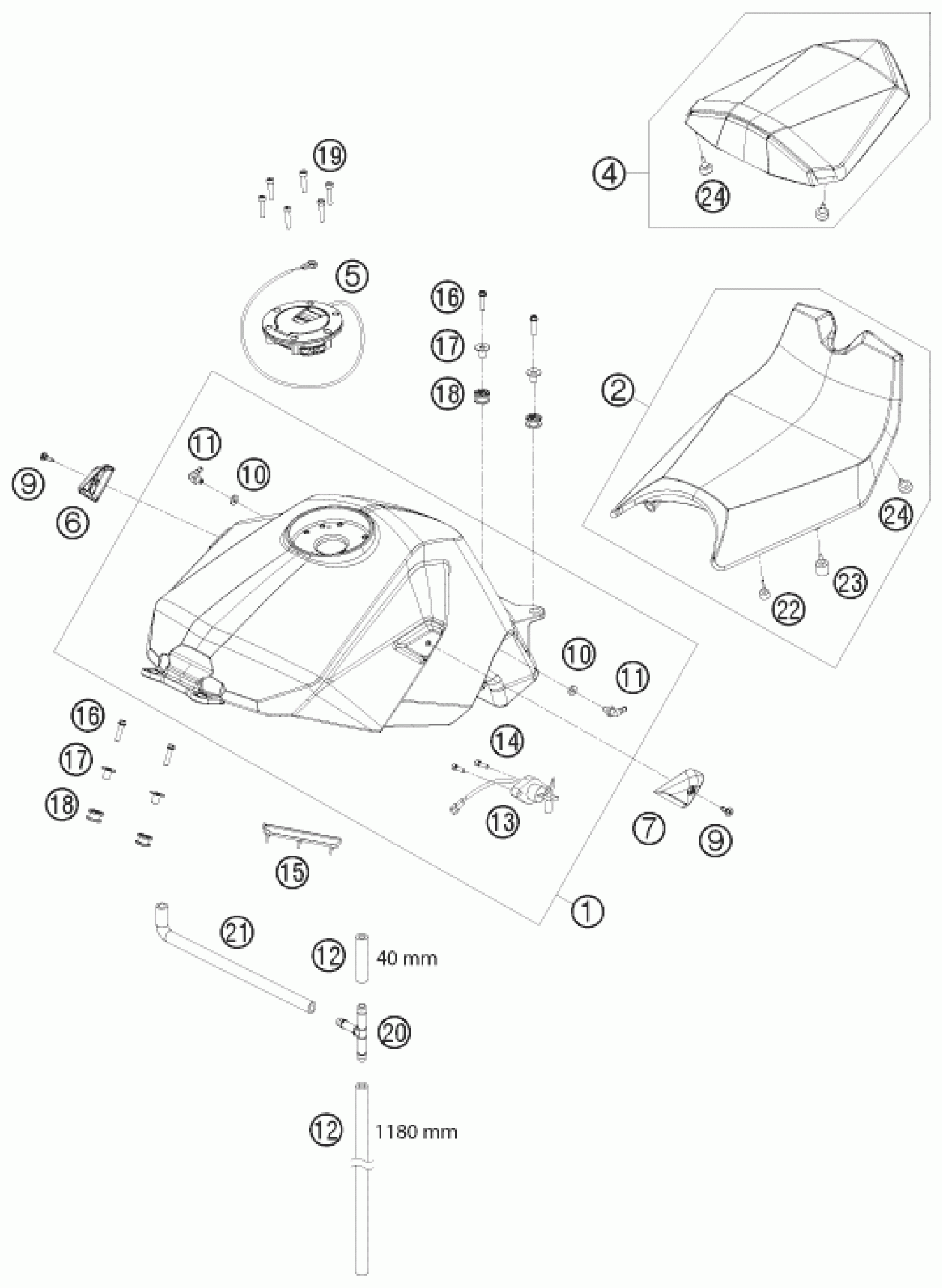 KTM 1190 RC 8 BLACK RRS 2009 TANK, SEAT Diagram