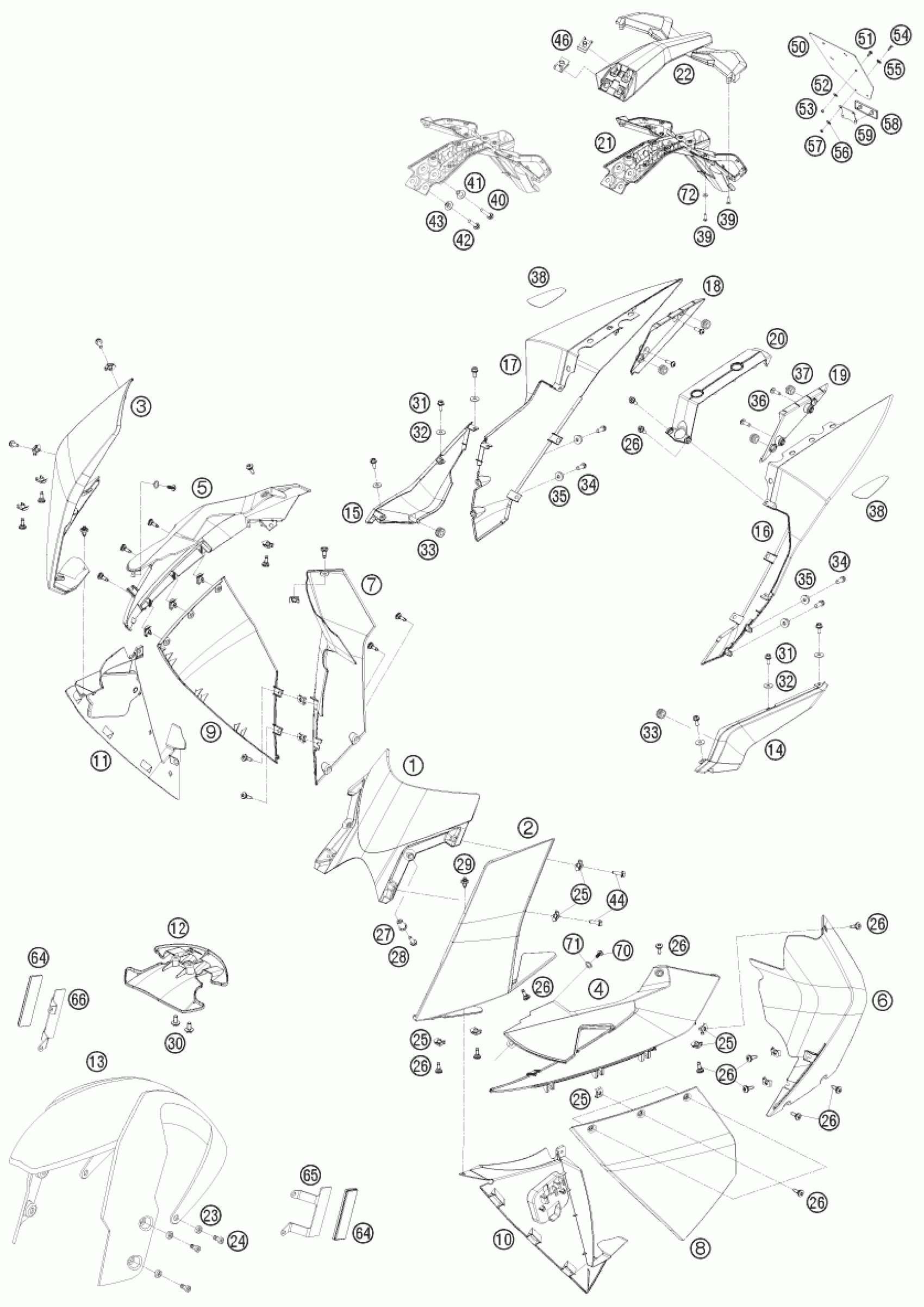 KTM 1190 RC 8 ORANGE 2008 MASK, FENDERS Diagram