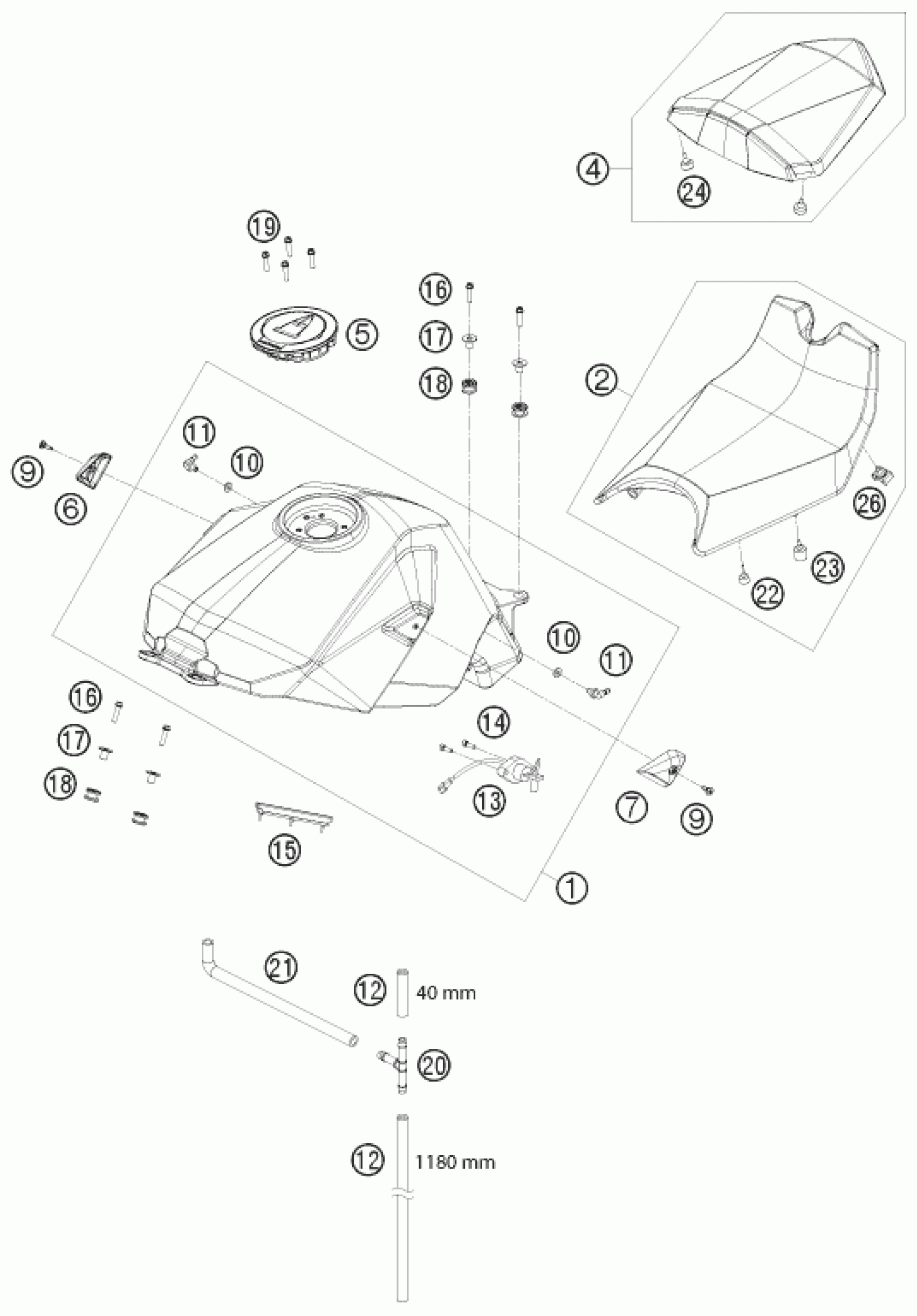 KTM 1190 RC8 ORANGE 2010 TANK, SEAT Diagram