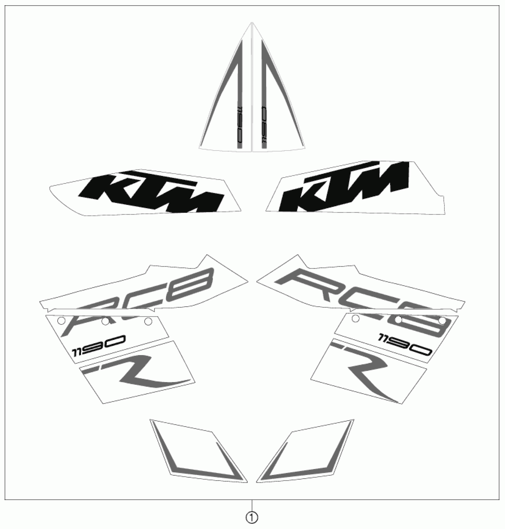 KTM 1190 RC8 R BLACK 2011 DECAL Diagram