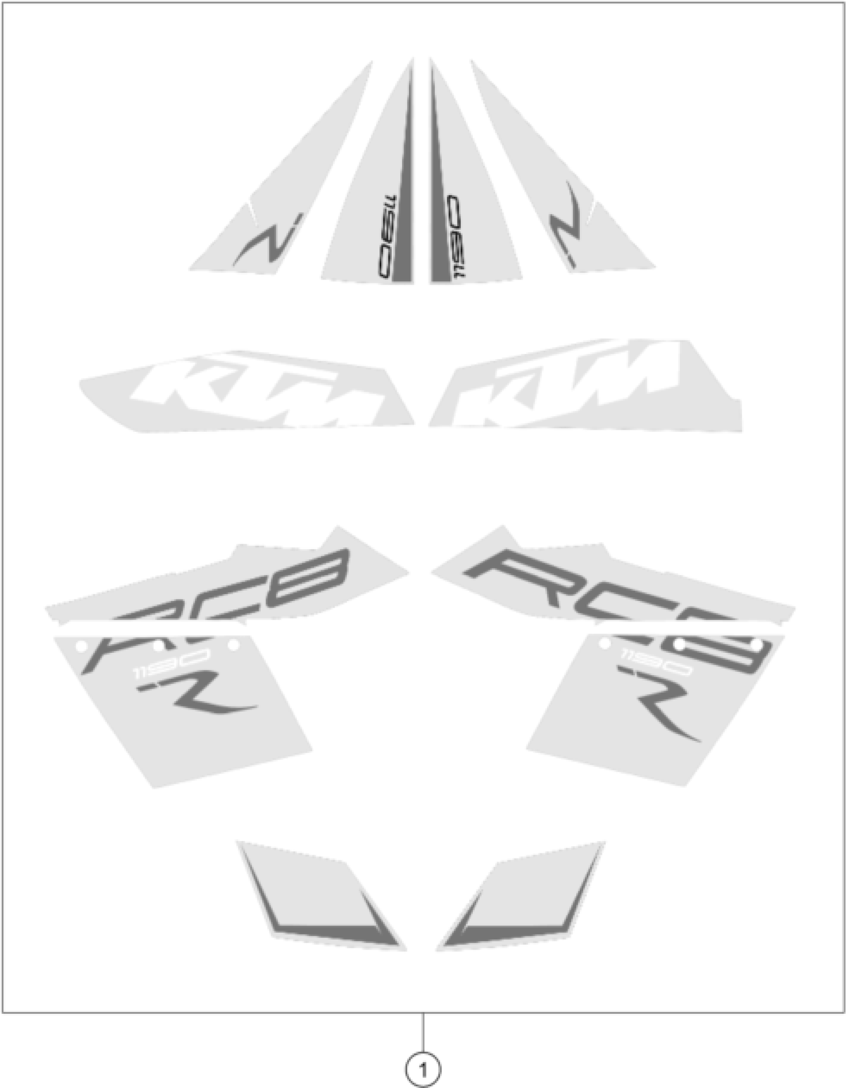 KTM 1190 RC8 R WHITE 2014 DECAL Diagram