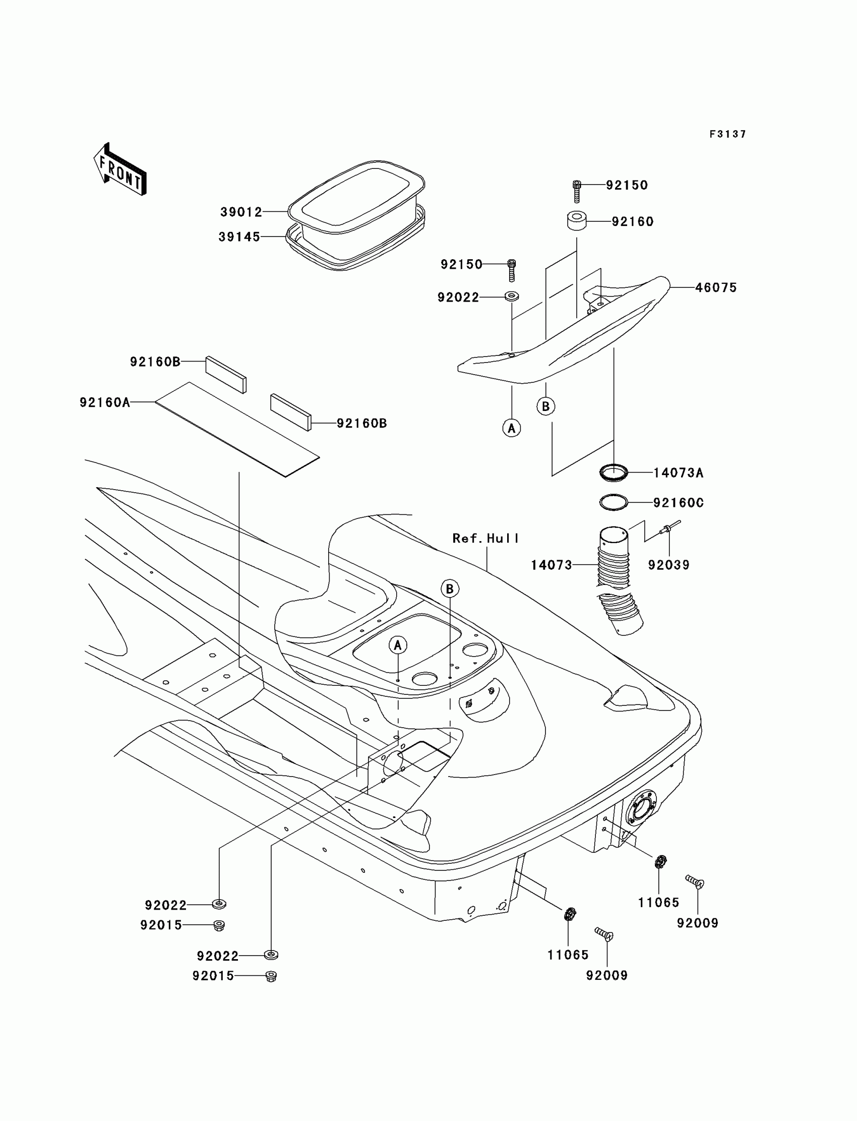 Kawasaki 1200 STX-R Hull Rear Fittings Diagram