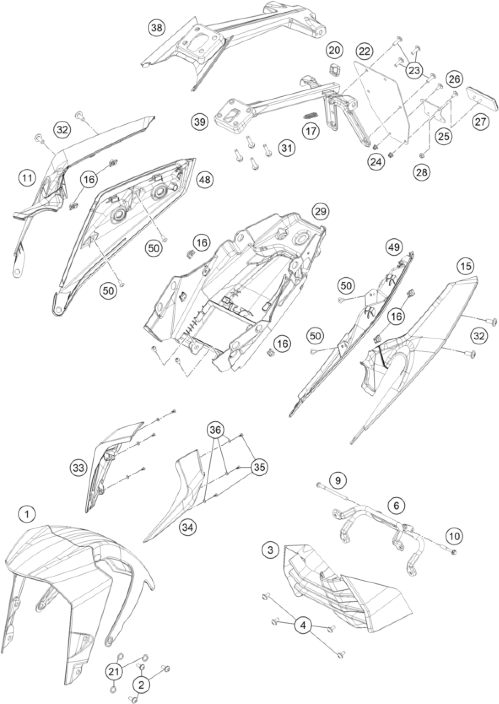 KTM 125 DUKE, black 2021 MASK, FENDERS Diagram