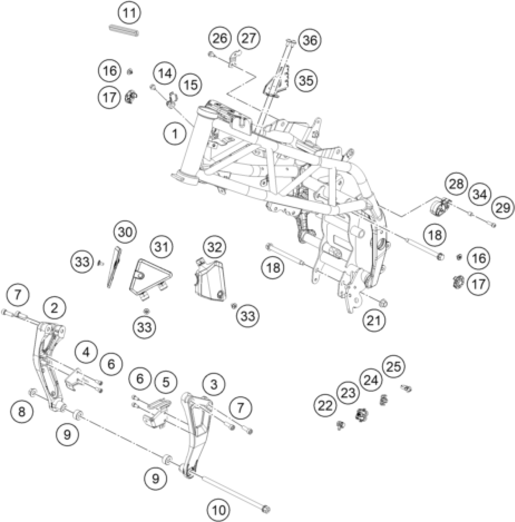 KTM 125 DUKE, blue 2025 FRAME Diagram