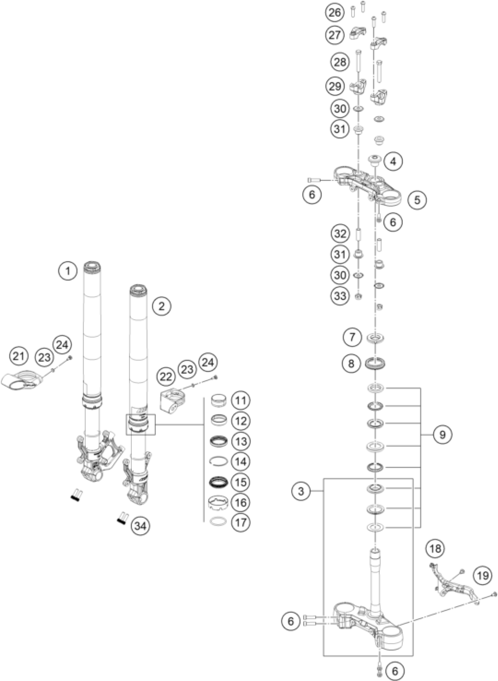 FRONT FORK, TRIPLE CLAMP