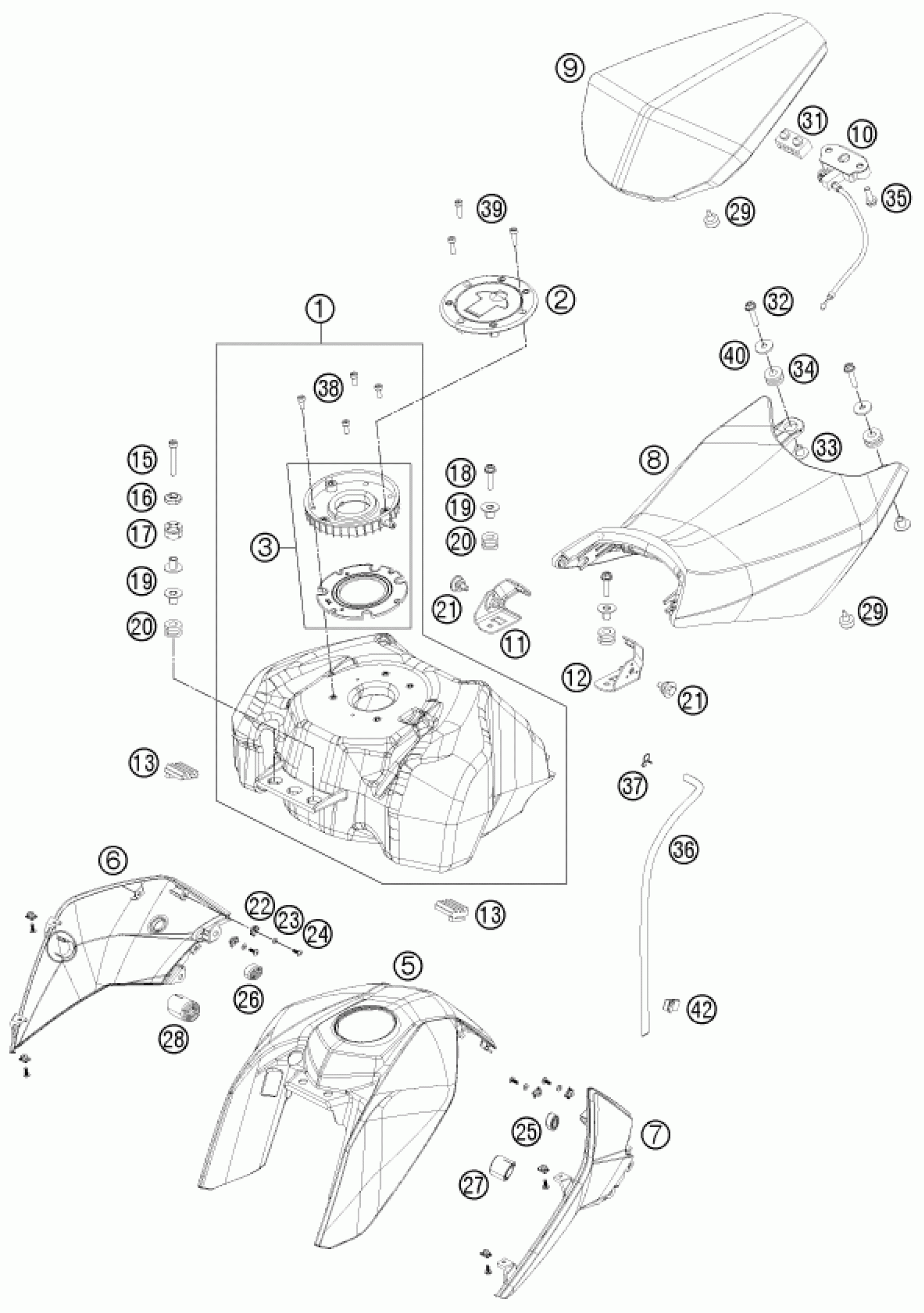 KTM 125 DUKE ORANGE 2012 TANK, SEAT Diagram