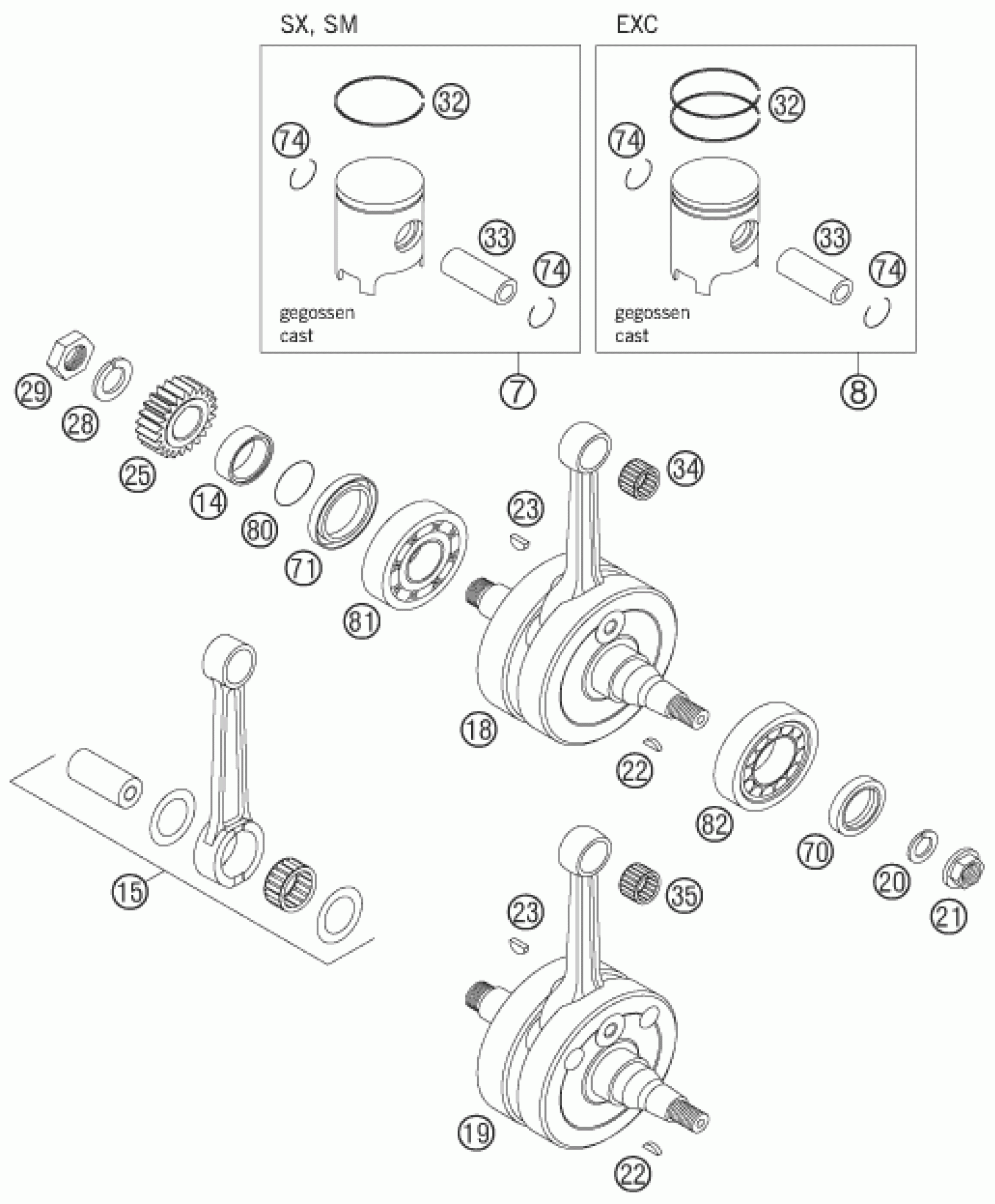 KTM 125 EXC 2005 CRANKSHAFT, PISTON Diagram