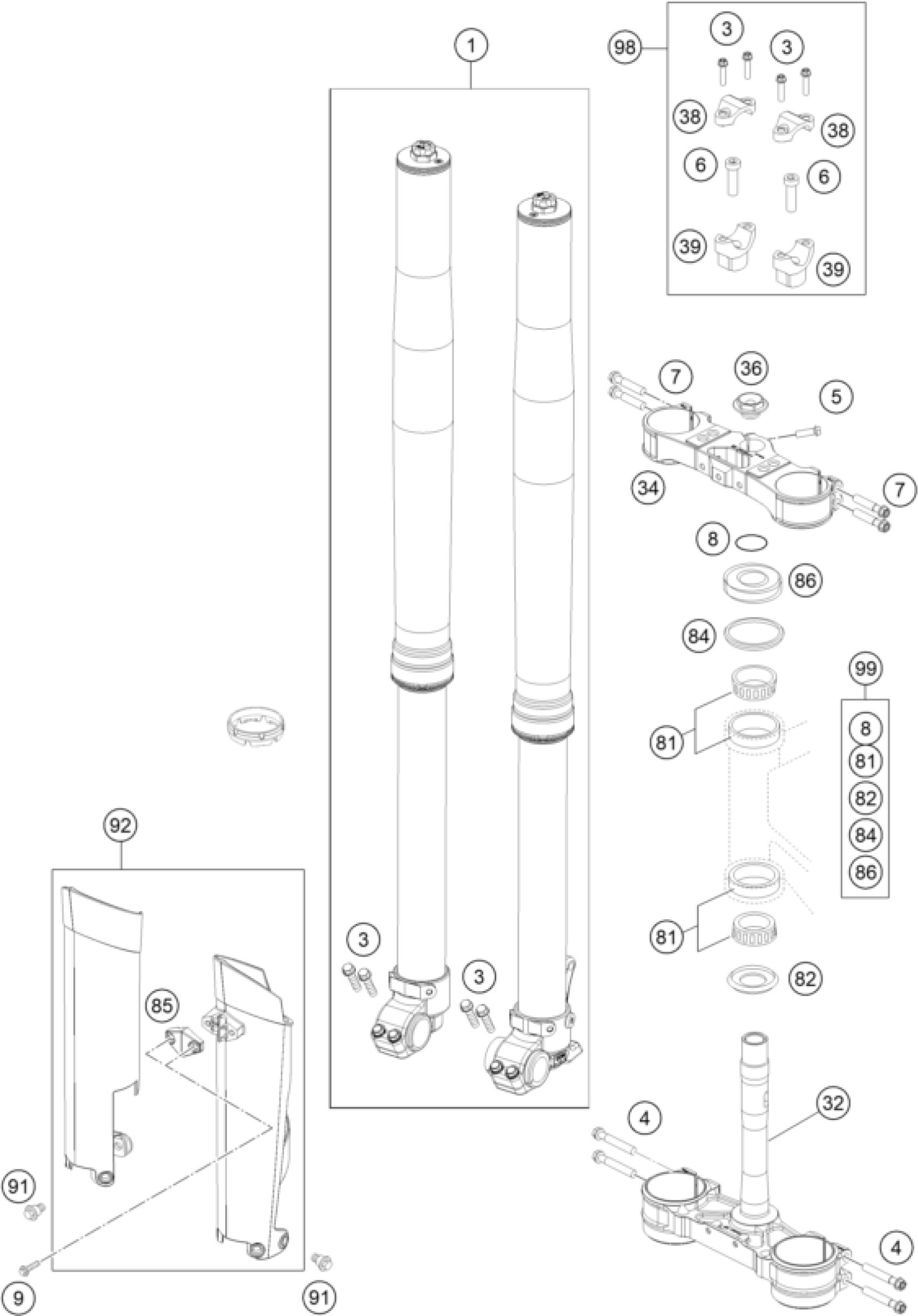 FRONT FORK, TRIPLE CLAMP