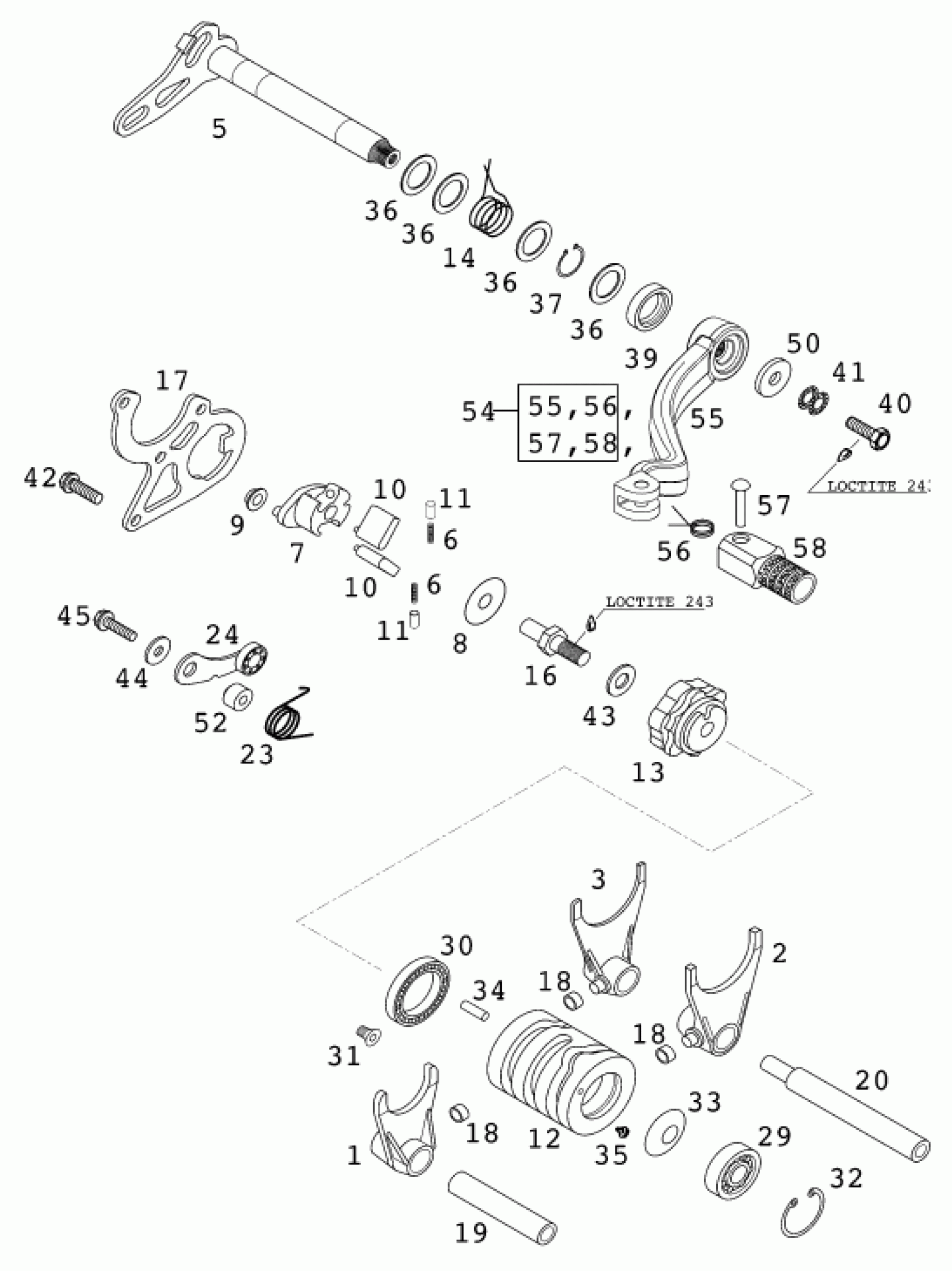 KTM 125 SUPERMOTO 100 2001 SHIFTING MECHANISM Diagram