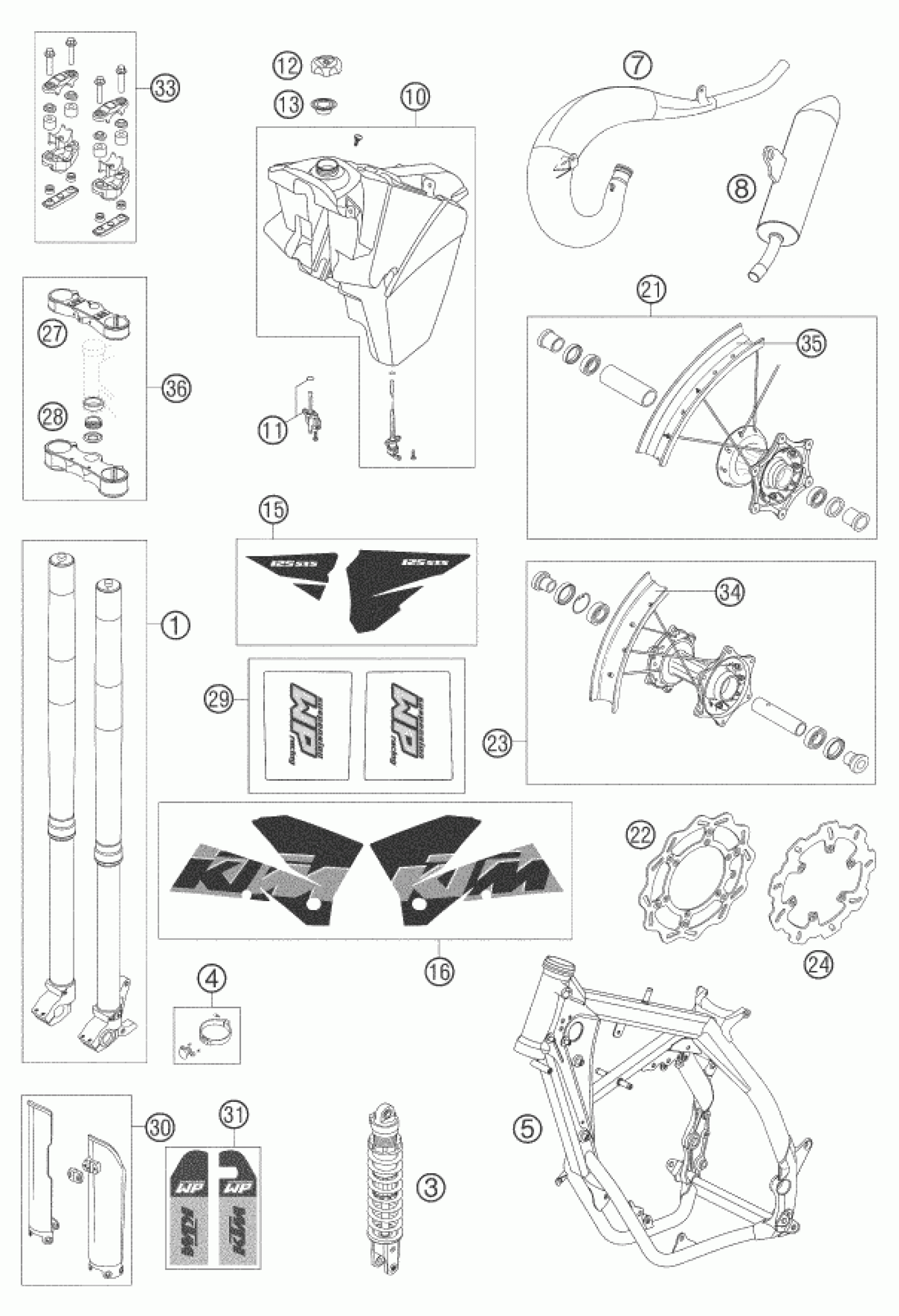 KTM 125 SXS 2005 NEW PARTS Diagram