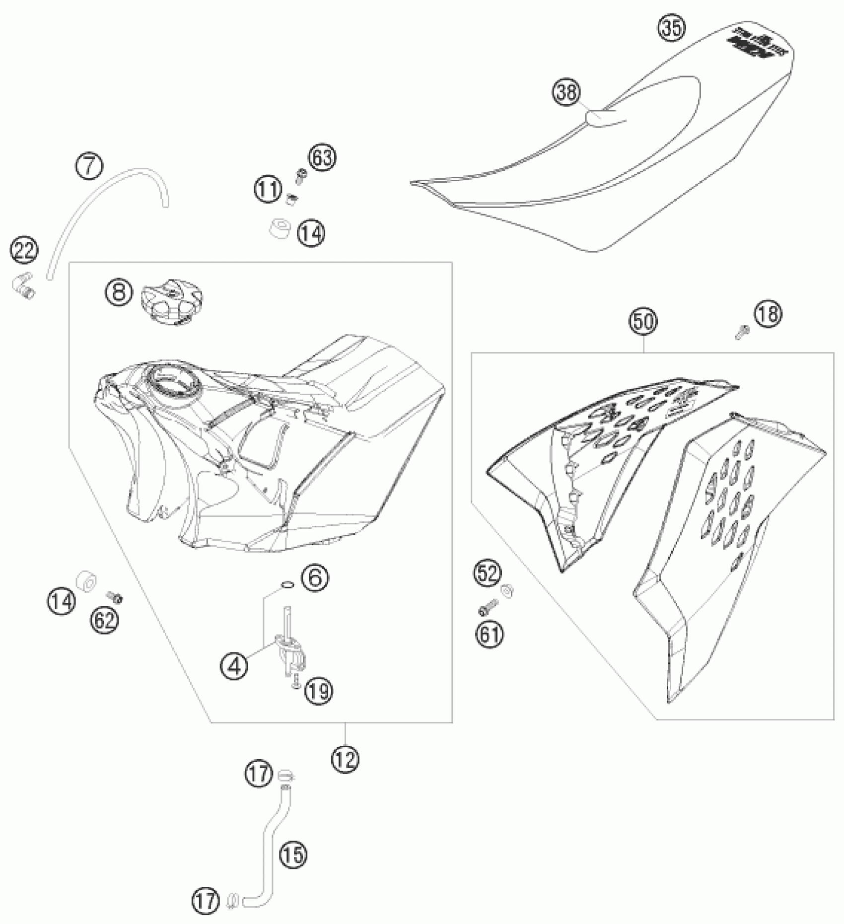 KTM 125 SXS 2008 TANK, SEAT Diagram