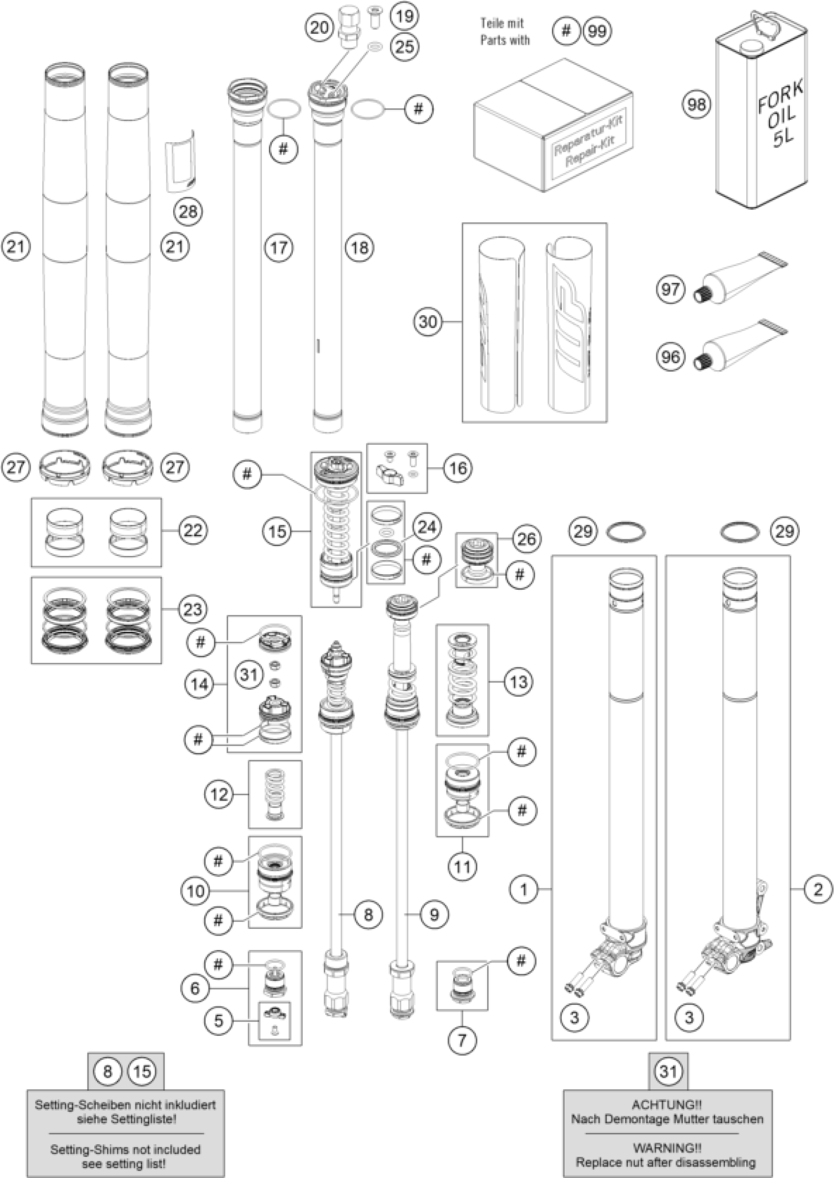 KTM 125 XC 2021 FRONT FORK DISASSEMBLED Diagram