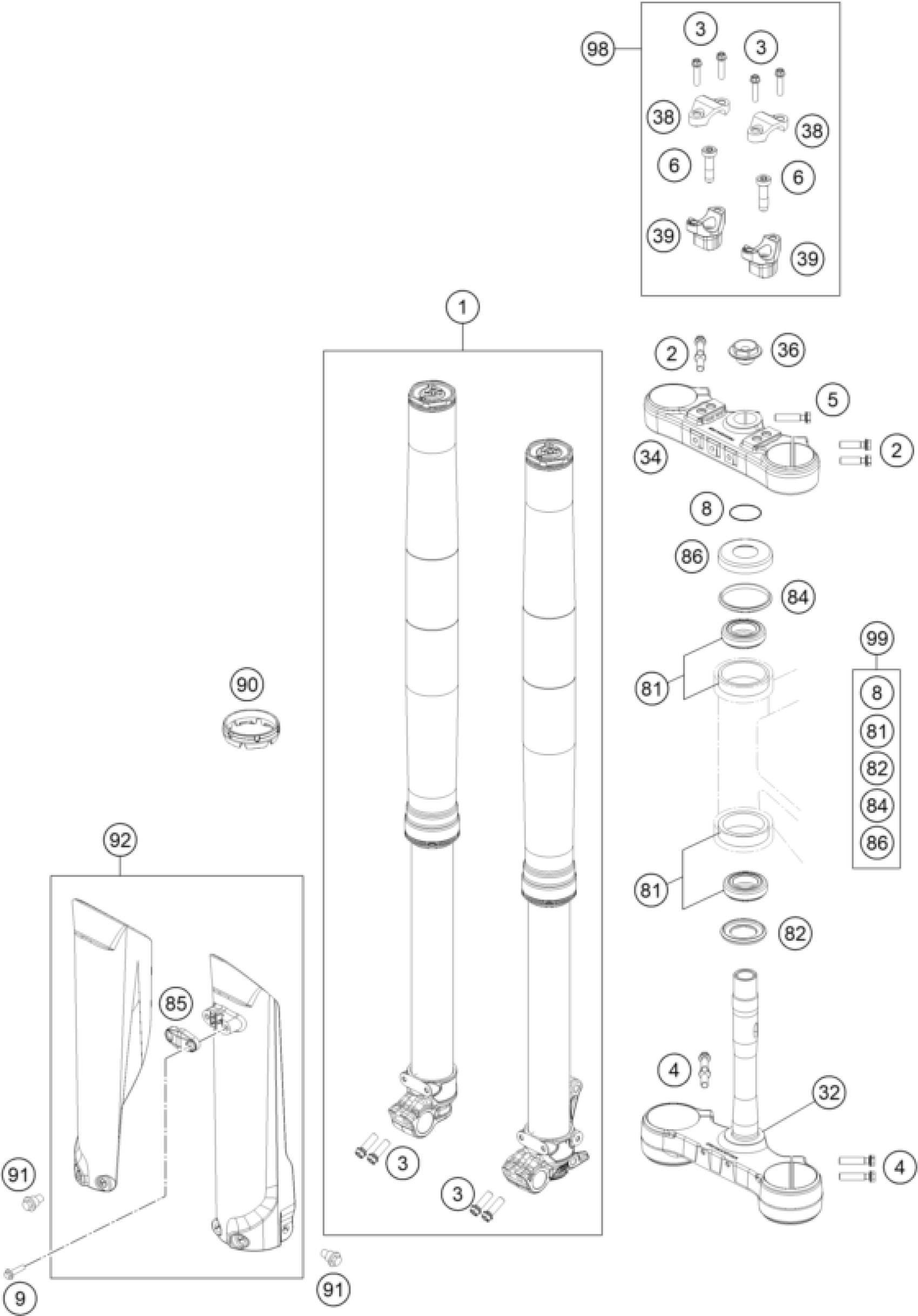 KTM 125 XC-W 2018 FRONT FORK, TRIPLE CLAMP Diagram