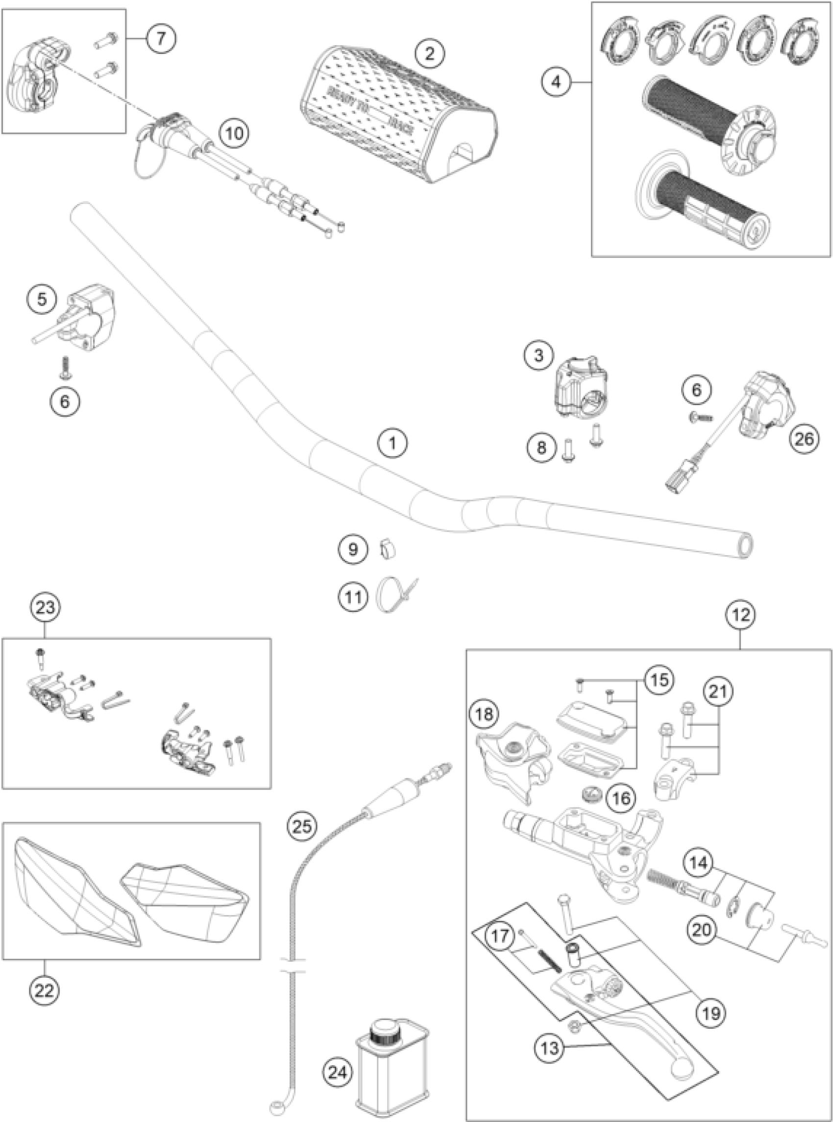 KTM 125 XC-W 2025 HANDLEBAR, CONTROLS Diagram