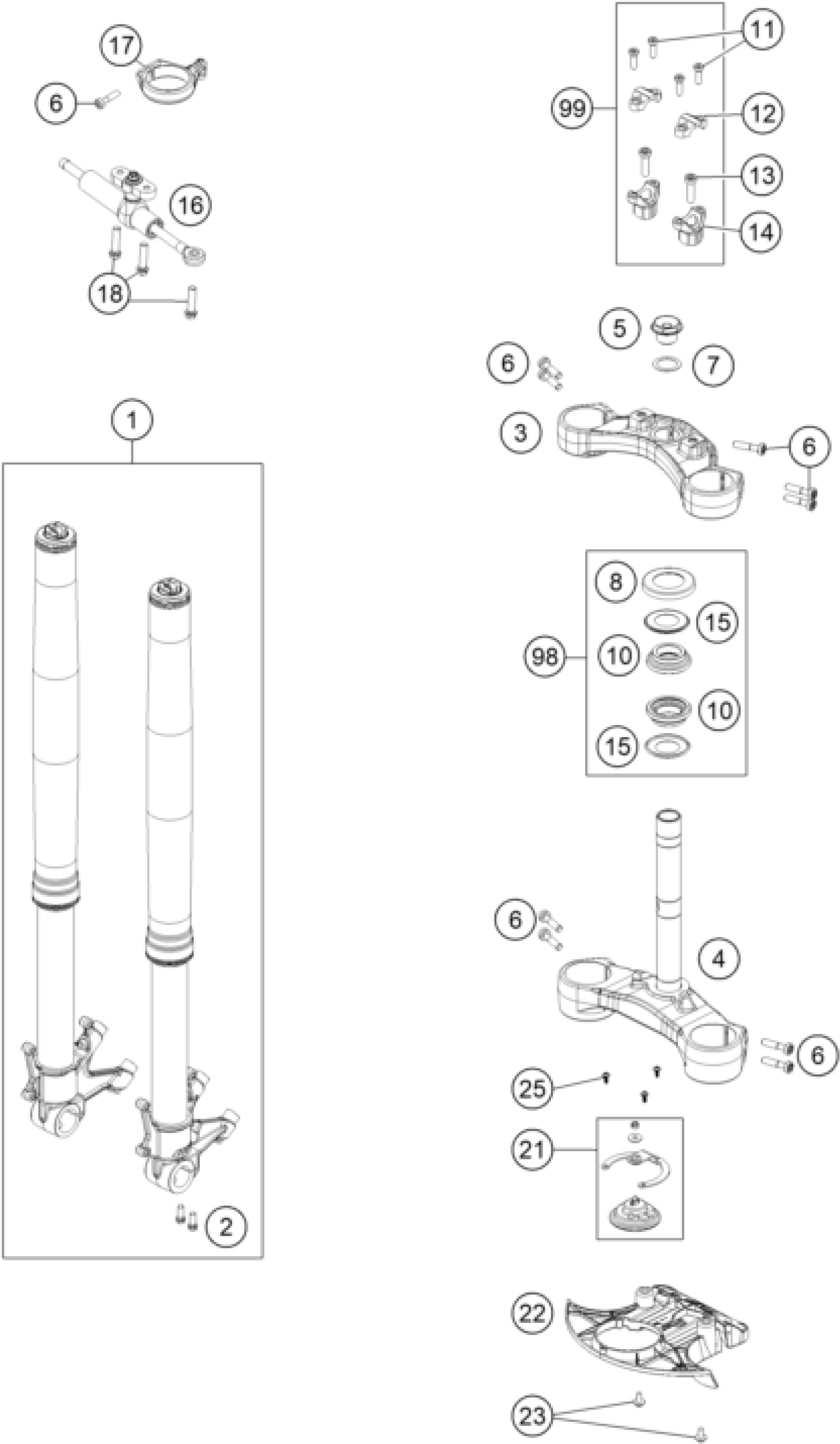 FRONT FORK, TRIPLE CLAMP