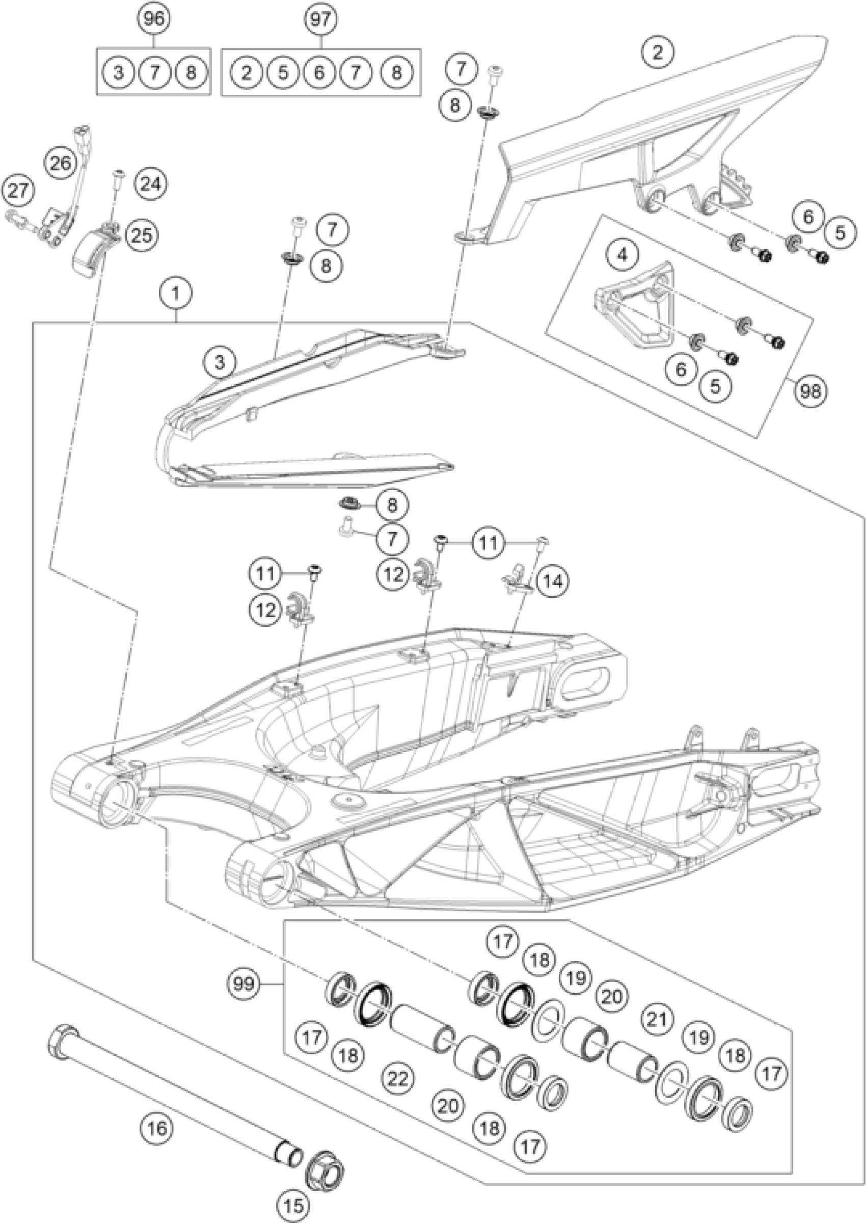 KTM 1290 S Adventure S, orange 2020 SWING ARM Diagram