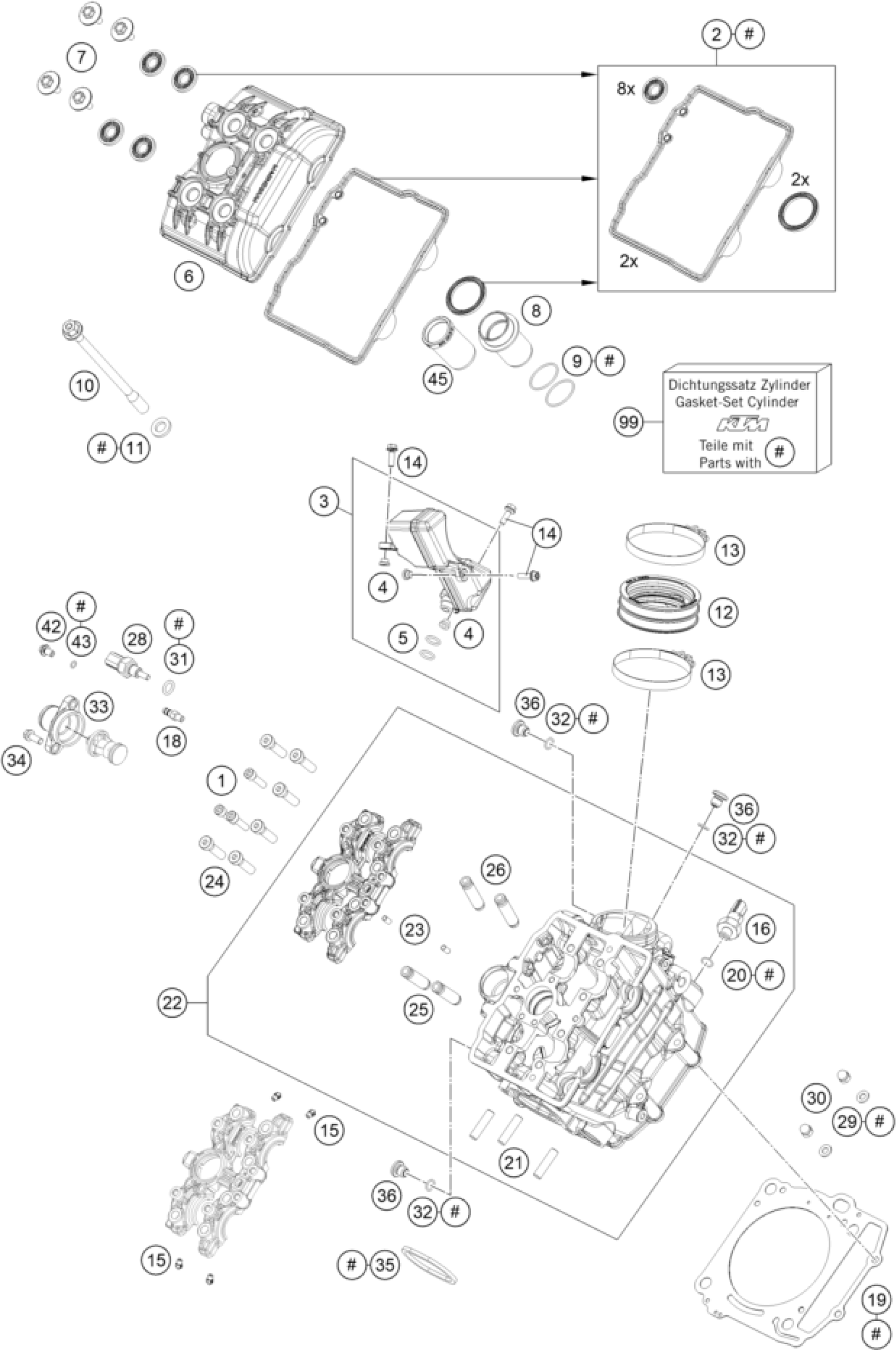 KTM 1290 SUPER DUKE GT, orange 2022 CYLINDER HEAD FRONT Diagram