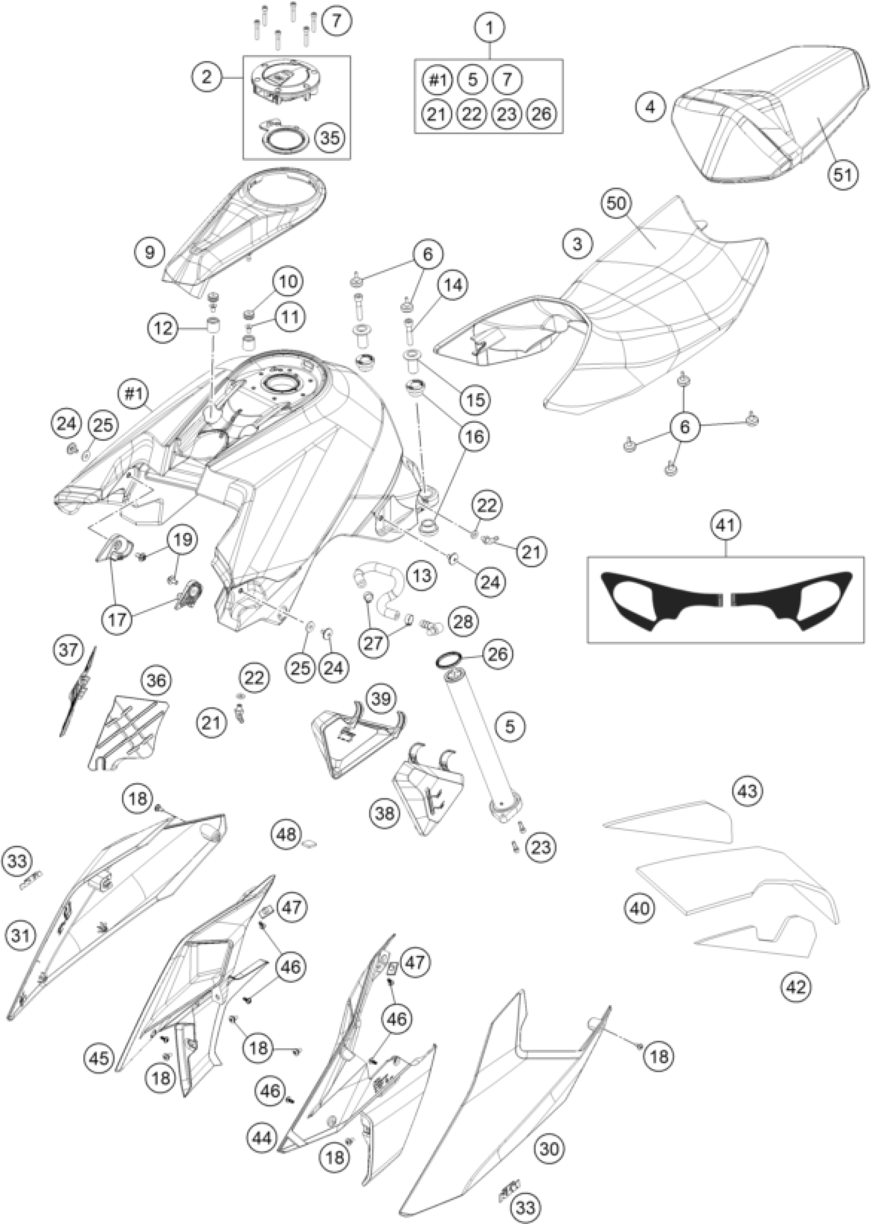 KTM 1290 Super Duke R, black 2018 TANK, SEAT Diagram