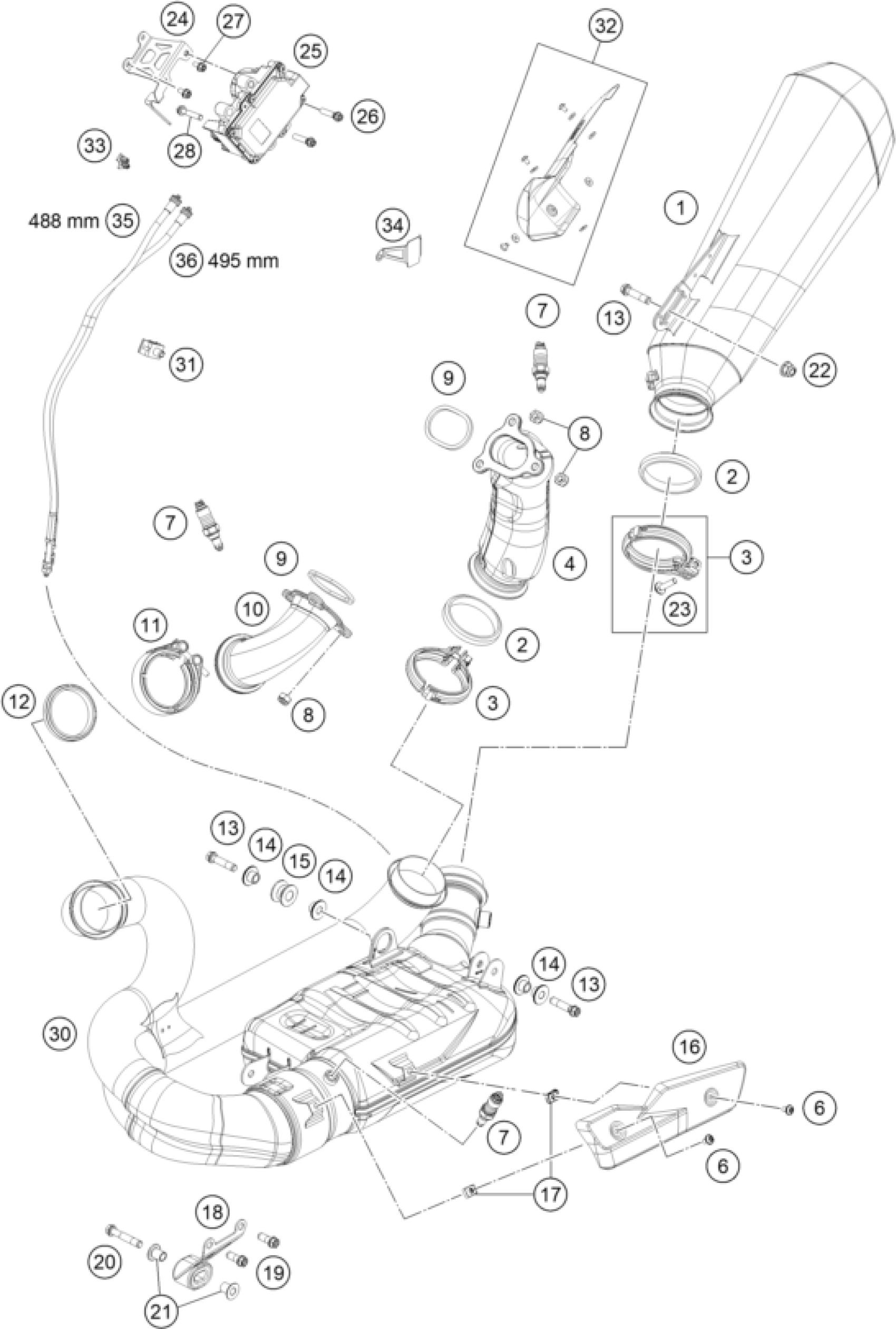 KTM 1290 SUPER DUKE RR 2021 EXHAUST SYSTEM Diagram