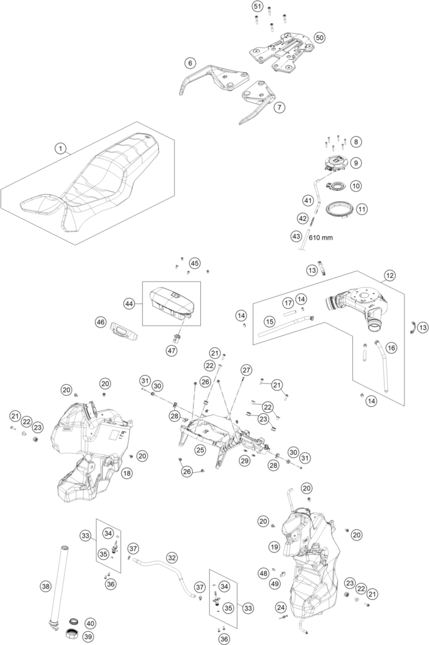 KTM 1390 SUPER ADVENTURE R 2025 TANK, SEAT Diagram