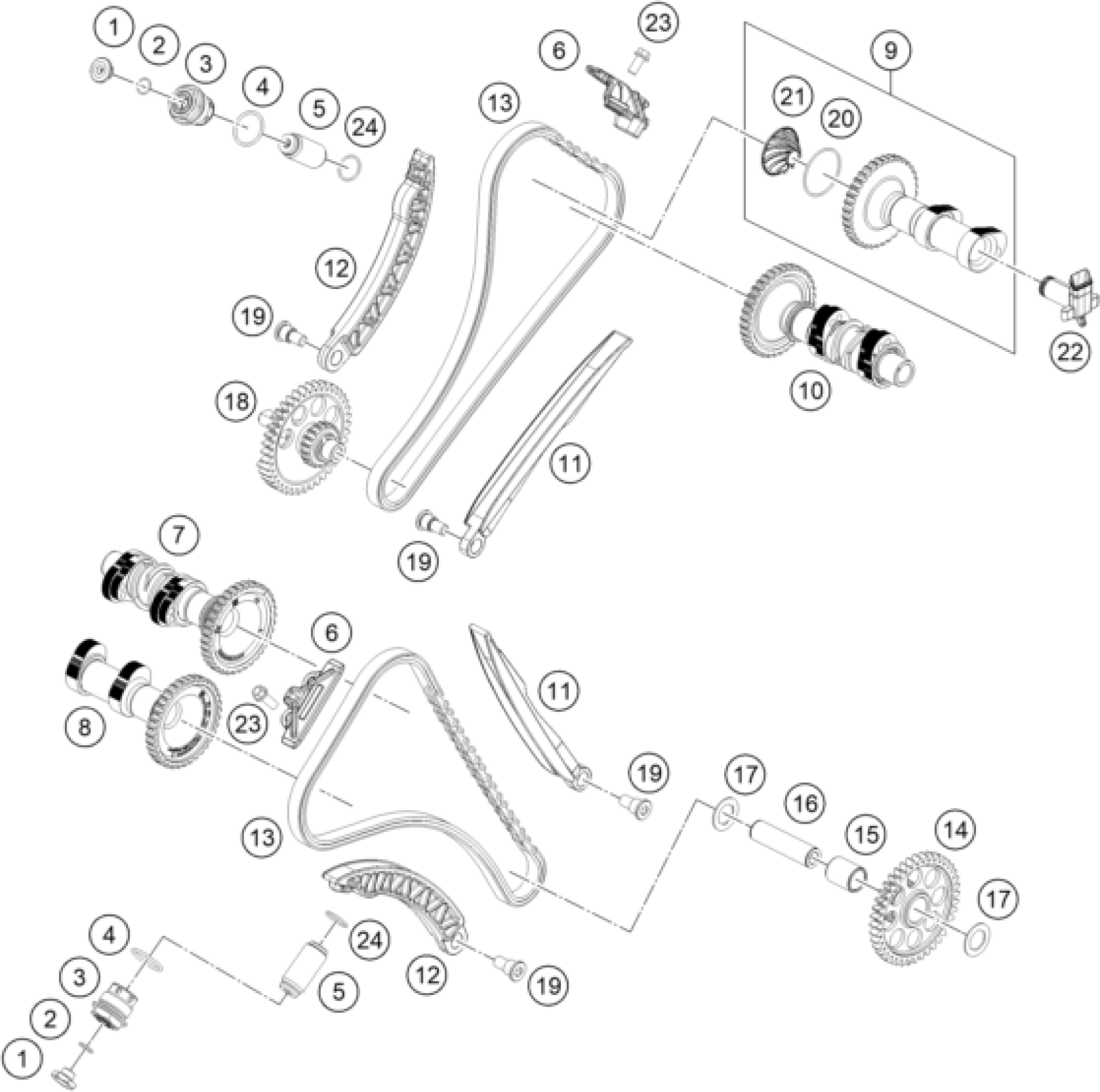 KTM 1390 SUPER DUKE R, black 2024 TIMING DRIVE Diagram