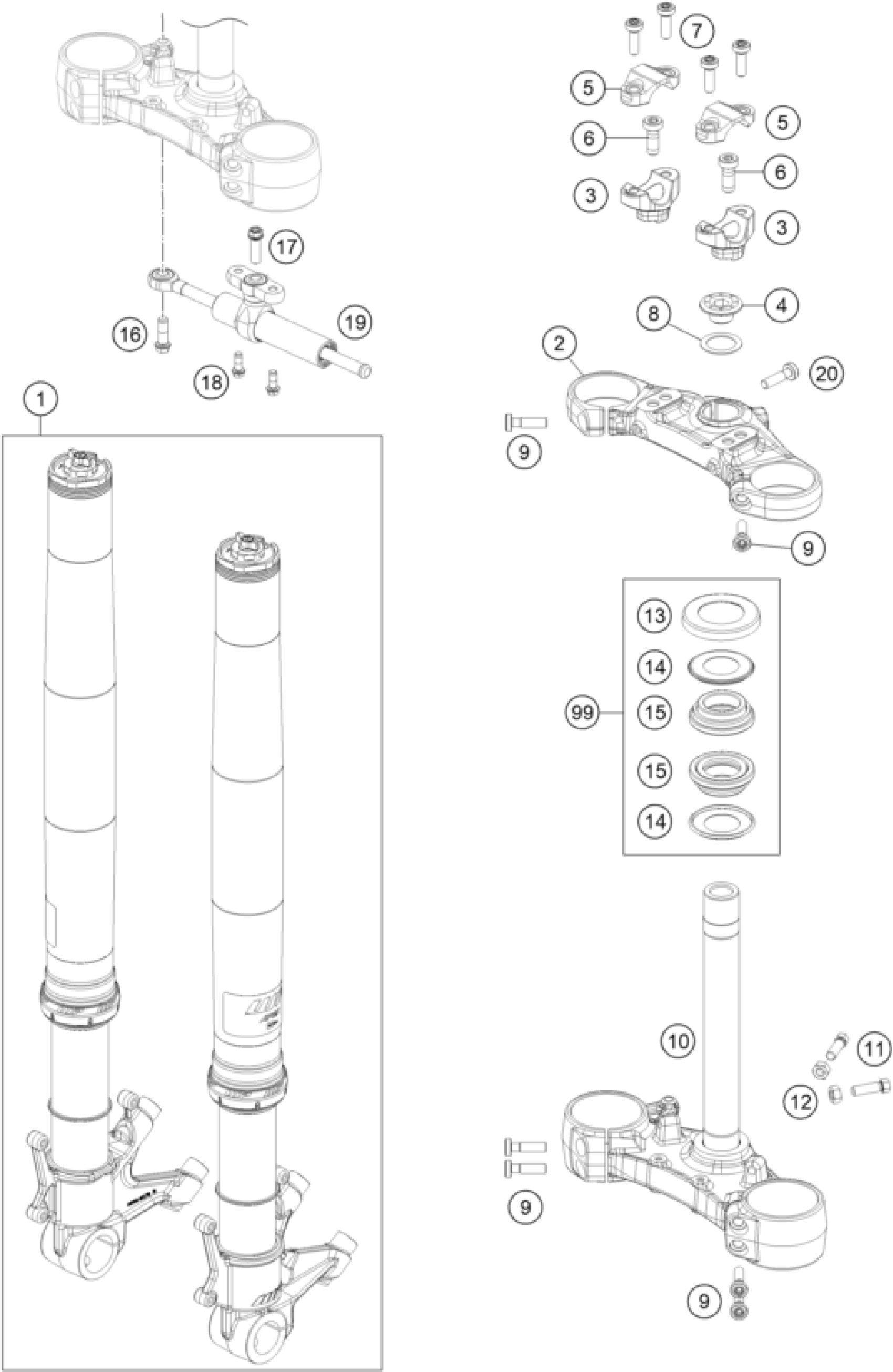 FRONT FORK, TRIPLE CLAMP