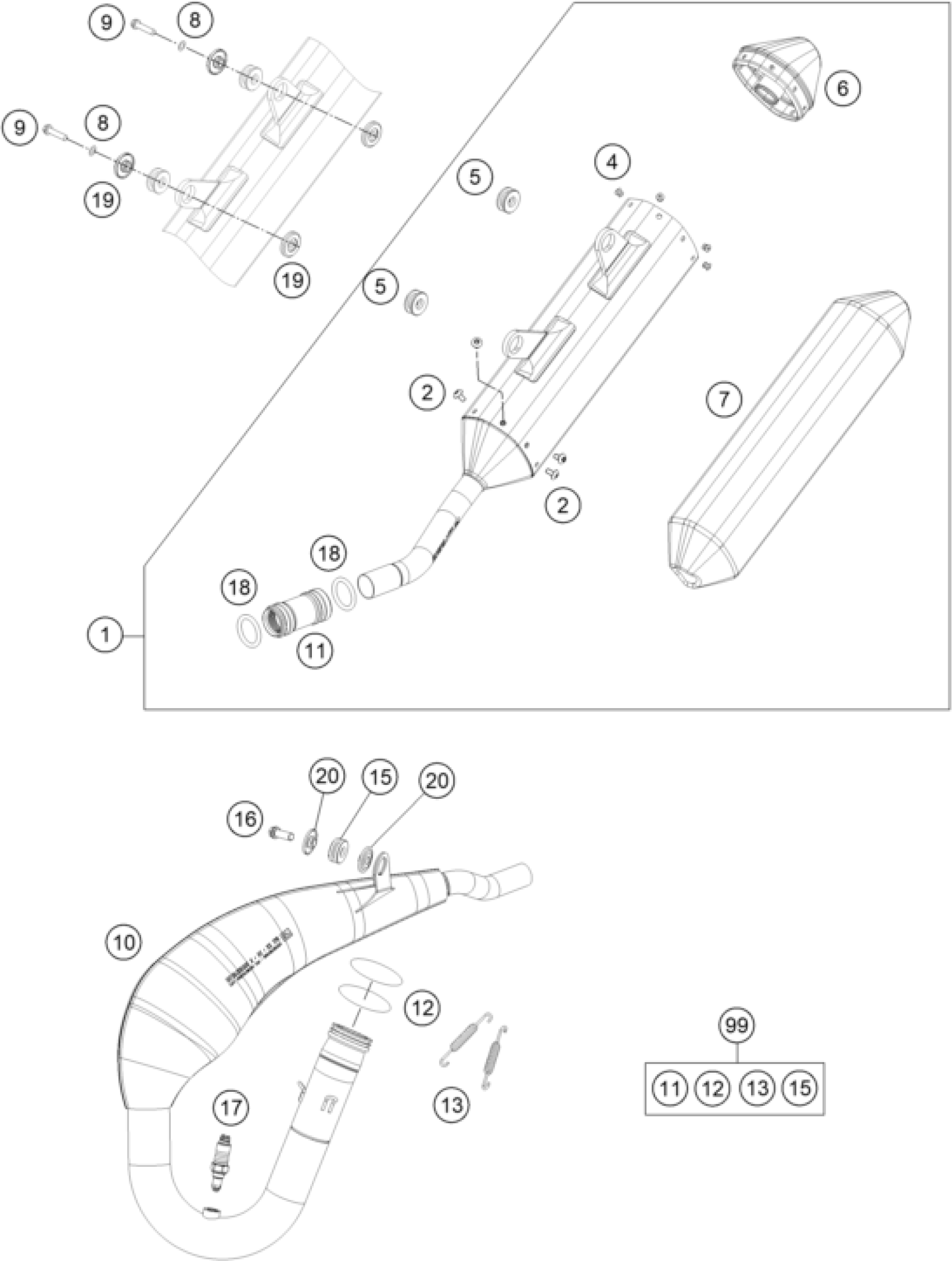 KTM 150 EXC 2023 EXHAUST SYSTEM Diagram