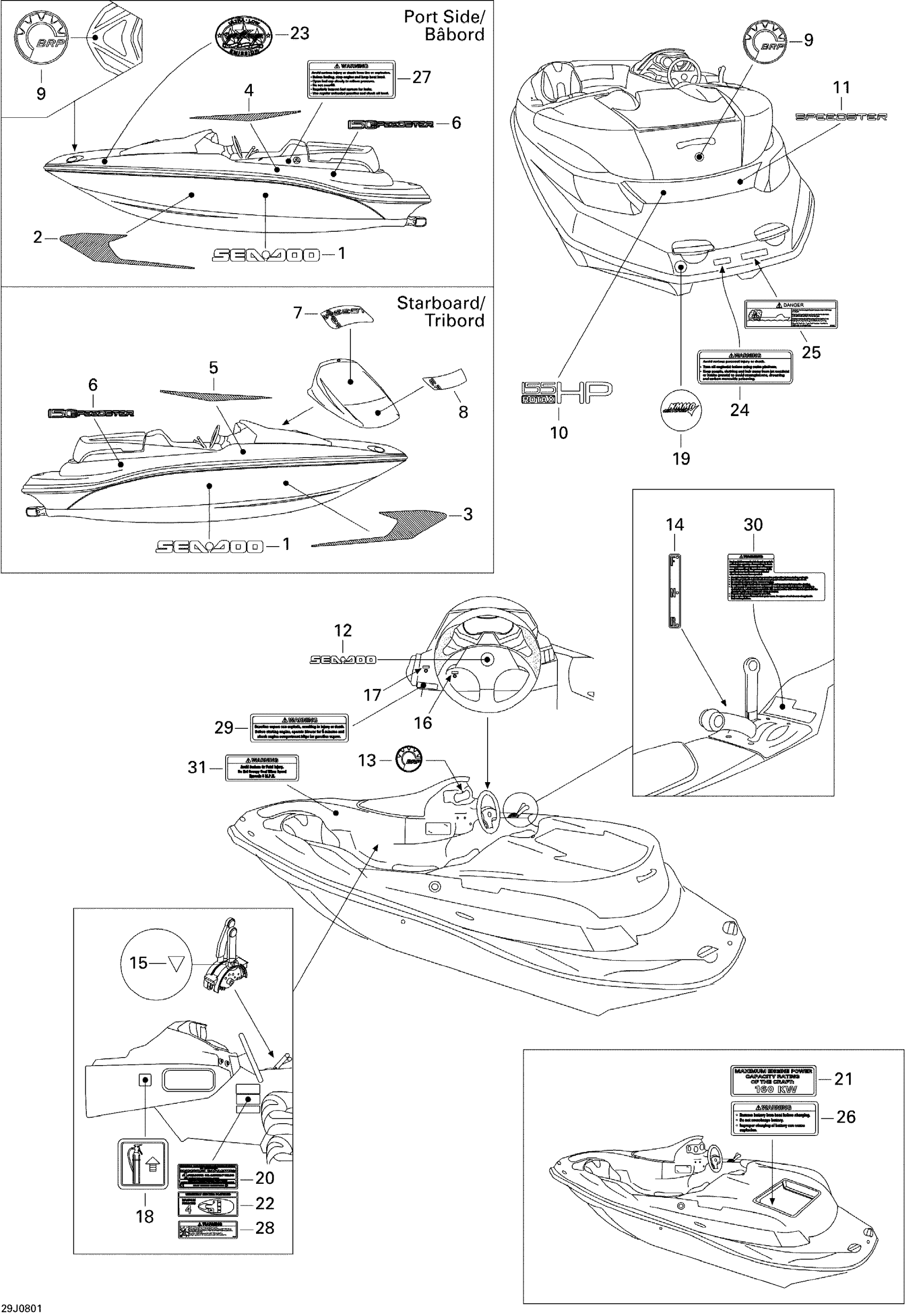 Sea-doo 150 Speedster 155, 2008 Decals Diagram