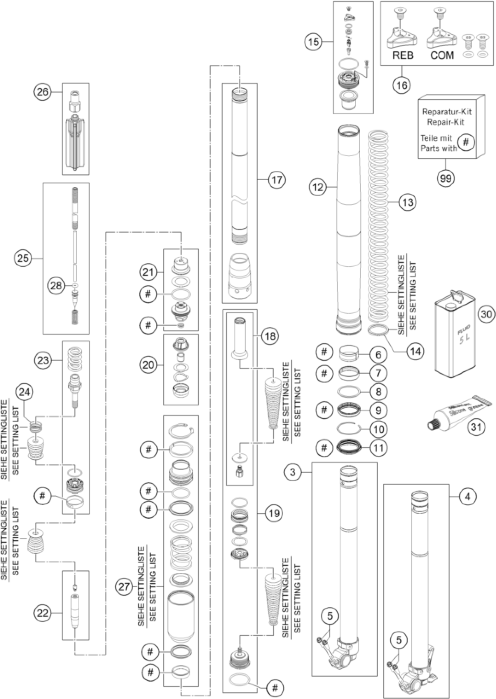 KTM 150 XC 2014 FRONT FORK DISASSEMBLED Diagram