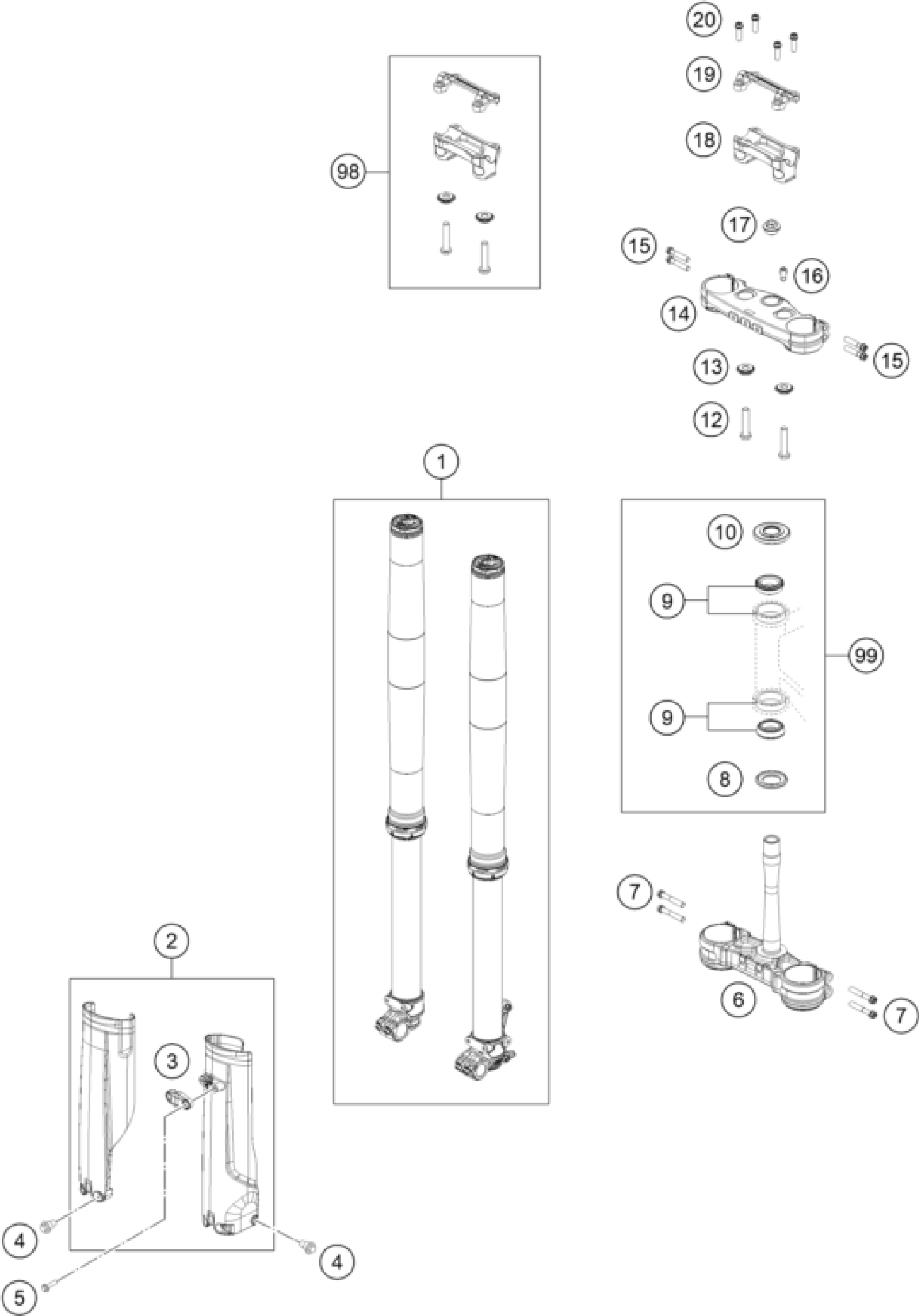 KTM 150 XC-W 2025 FRONT FORK, TRIPLE CLAMP Diagram