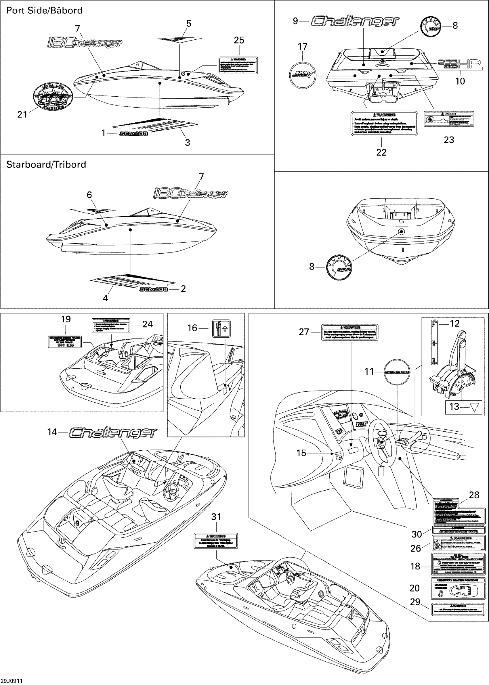 Sea-doo 180 Challenger SE, 1 x 255 HO, 2009 09- Decals Diagram