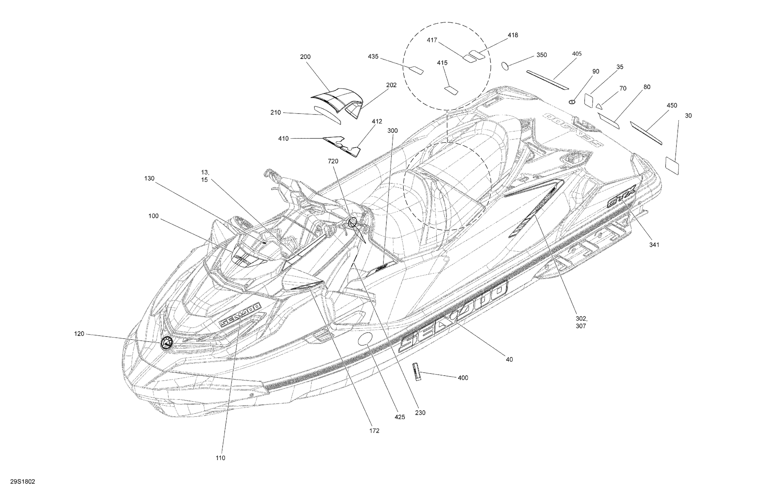 Sea-doo GTX 230, 2018 Decals - GTX Engine 1500 HO ACE Package STD Diagram
