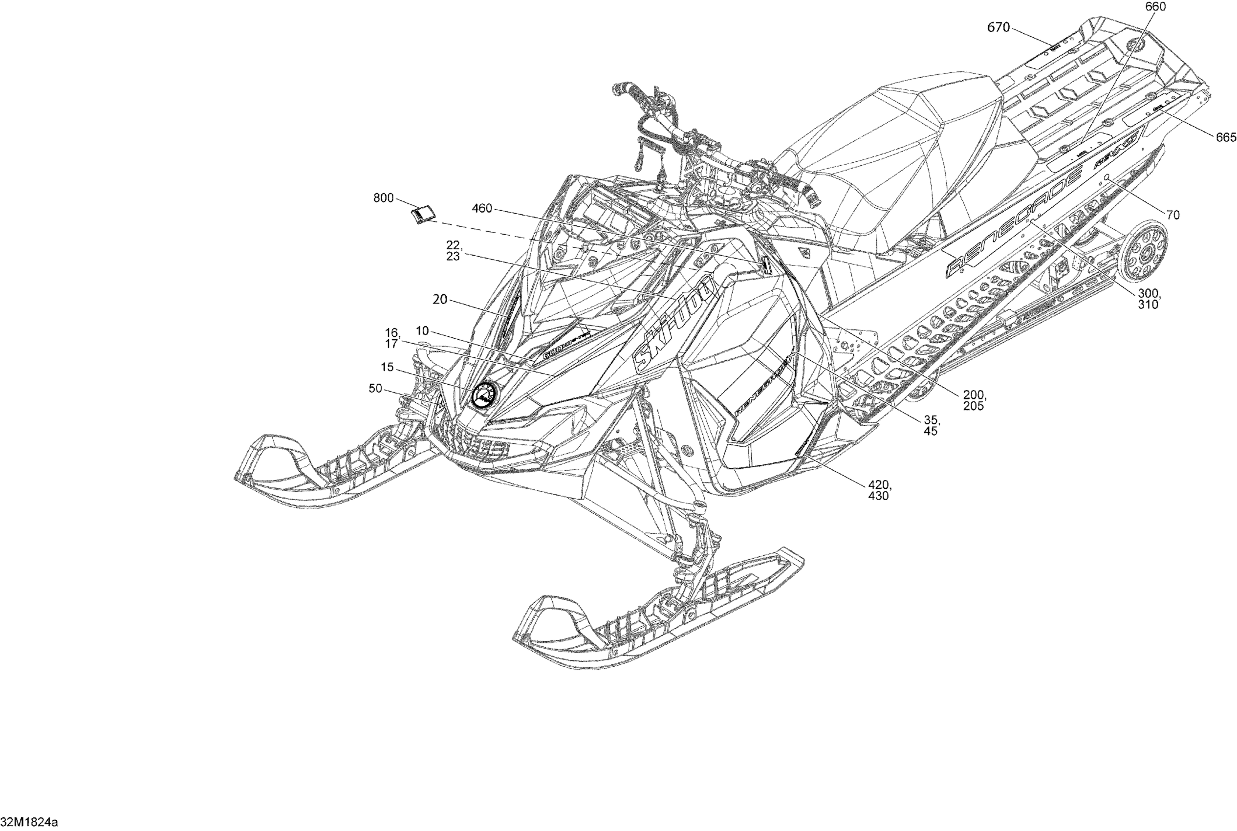 Ski-Doo 2- RENEGADE 600HO E-TEC, 2018 09- Decals Renegade - 600HO E-TEC - Package X Diagram