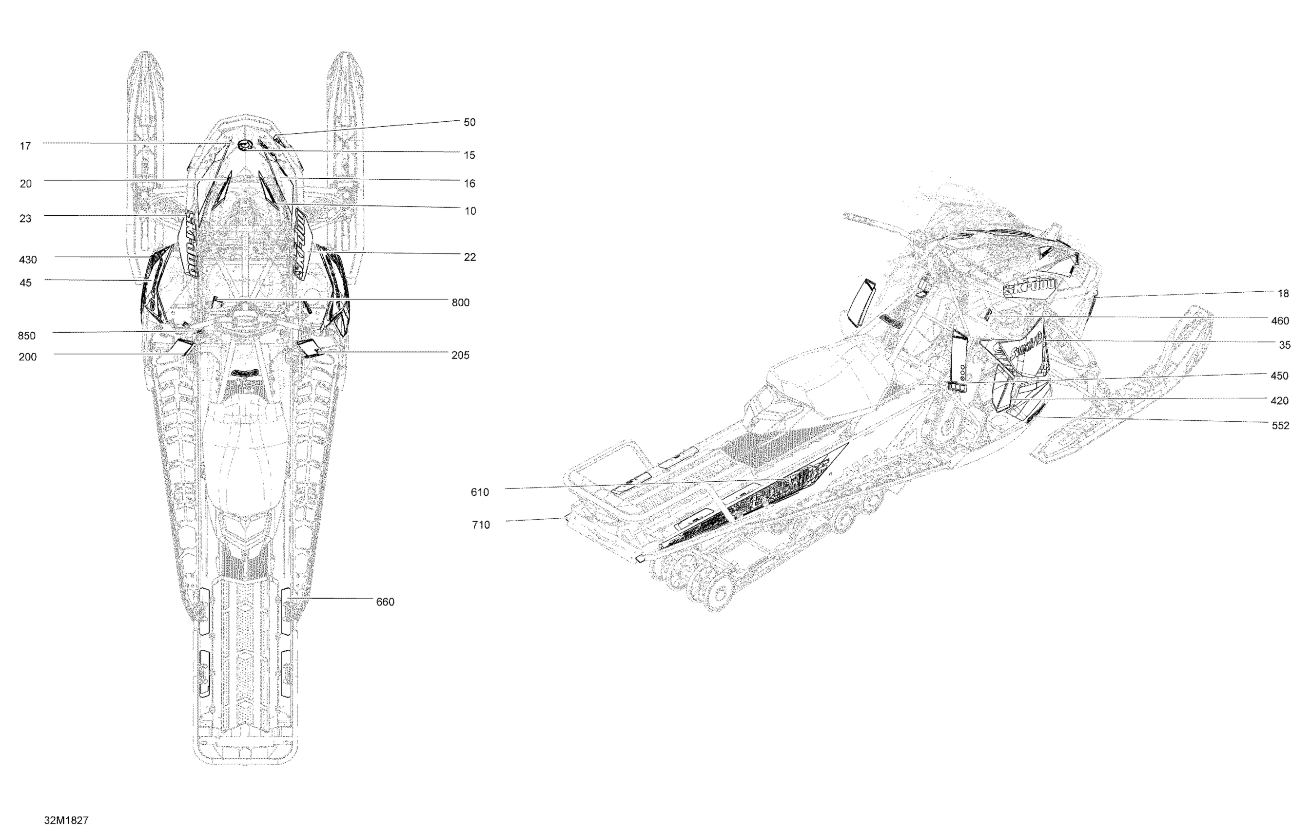 Ski-Doo 2- SUMMIT 600HO E-TEC, 2018 09- Decals Summit - 600HO E-TEC - Package Sport Diagram