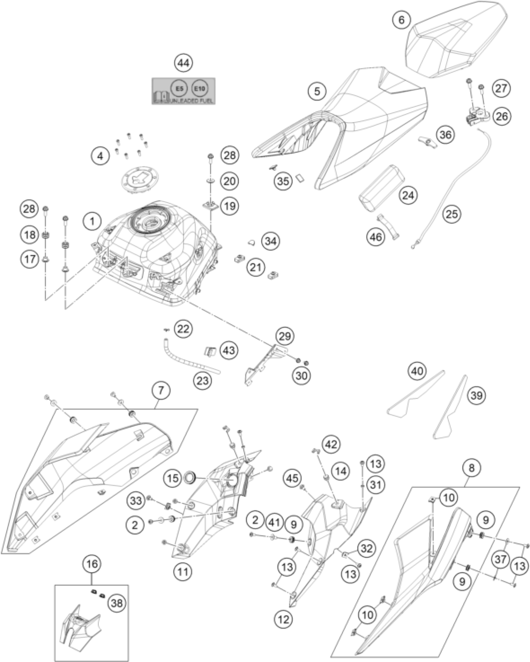 KTM 200 DUKE, grey, ABS-B.D. 2025 TANK, SEAT Diagram