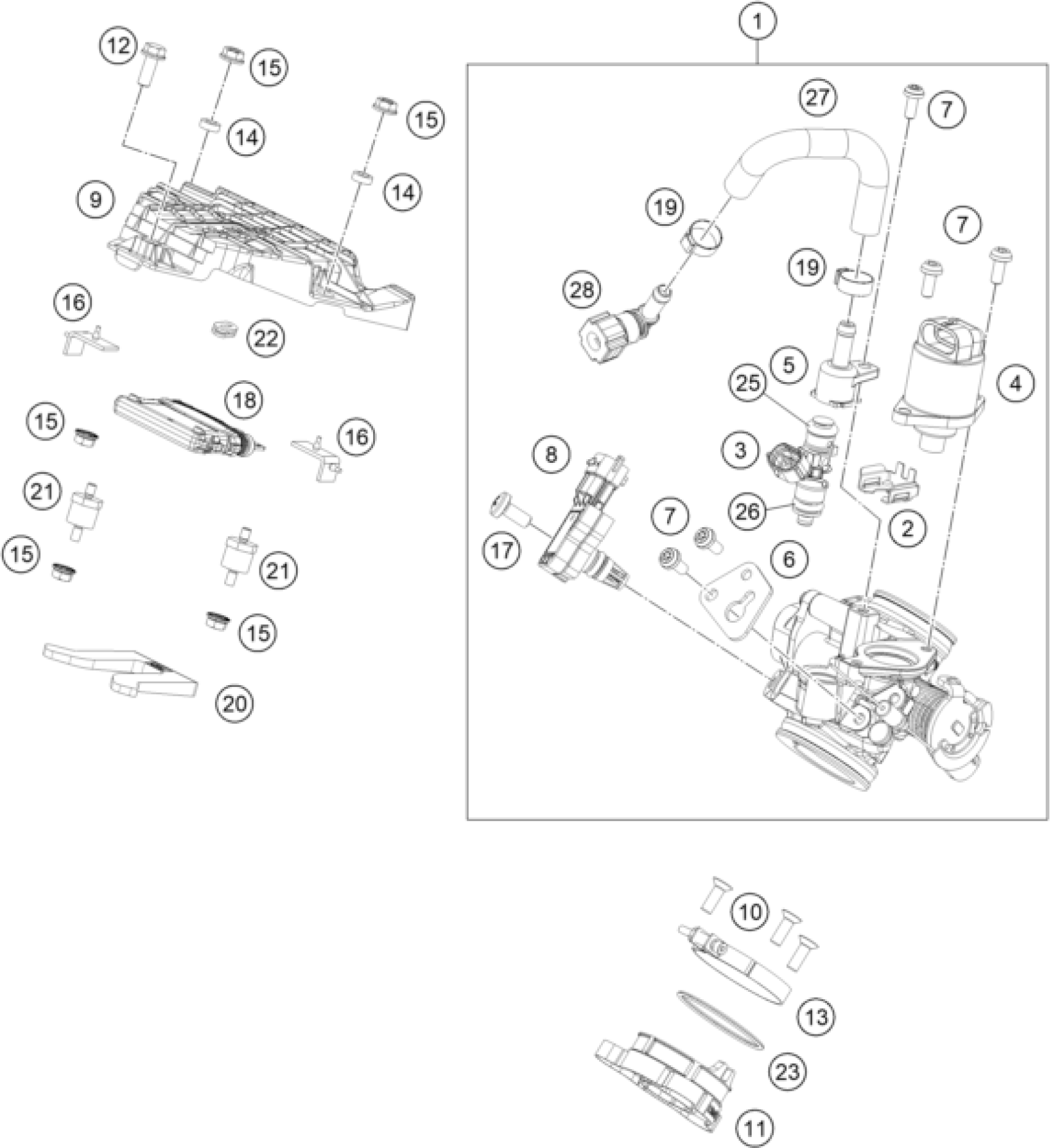 KTM 200 DUKE white, w/o ABS - CKD 2023 THROTTLE BODY Diagram
