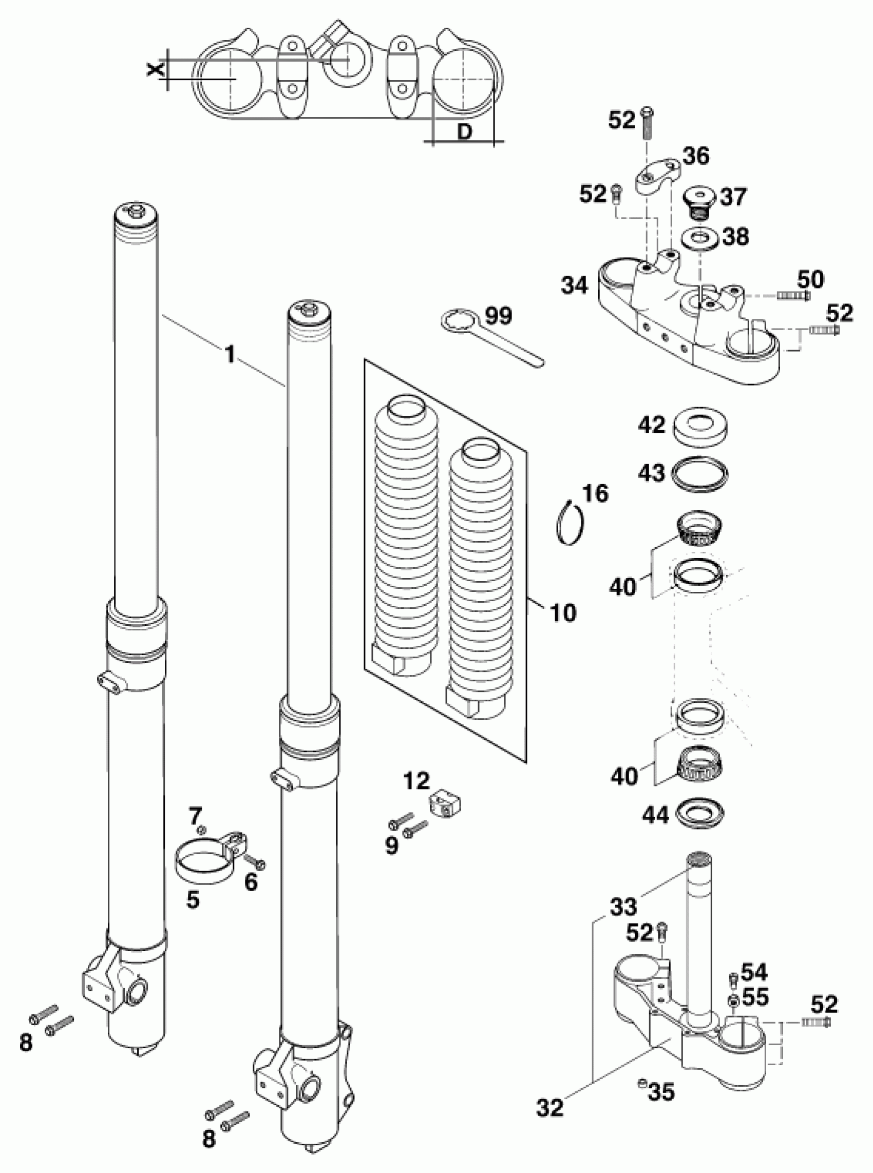 KTM 200 MXC '99 <1999 FRONT FORK, TRIPLE CLAMP Diagram
