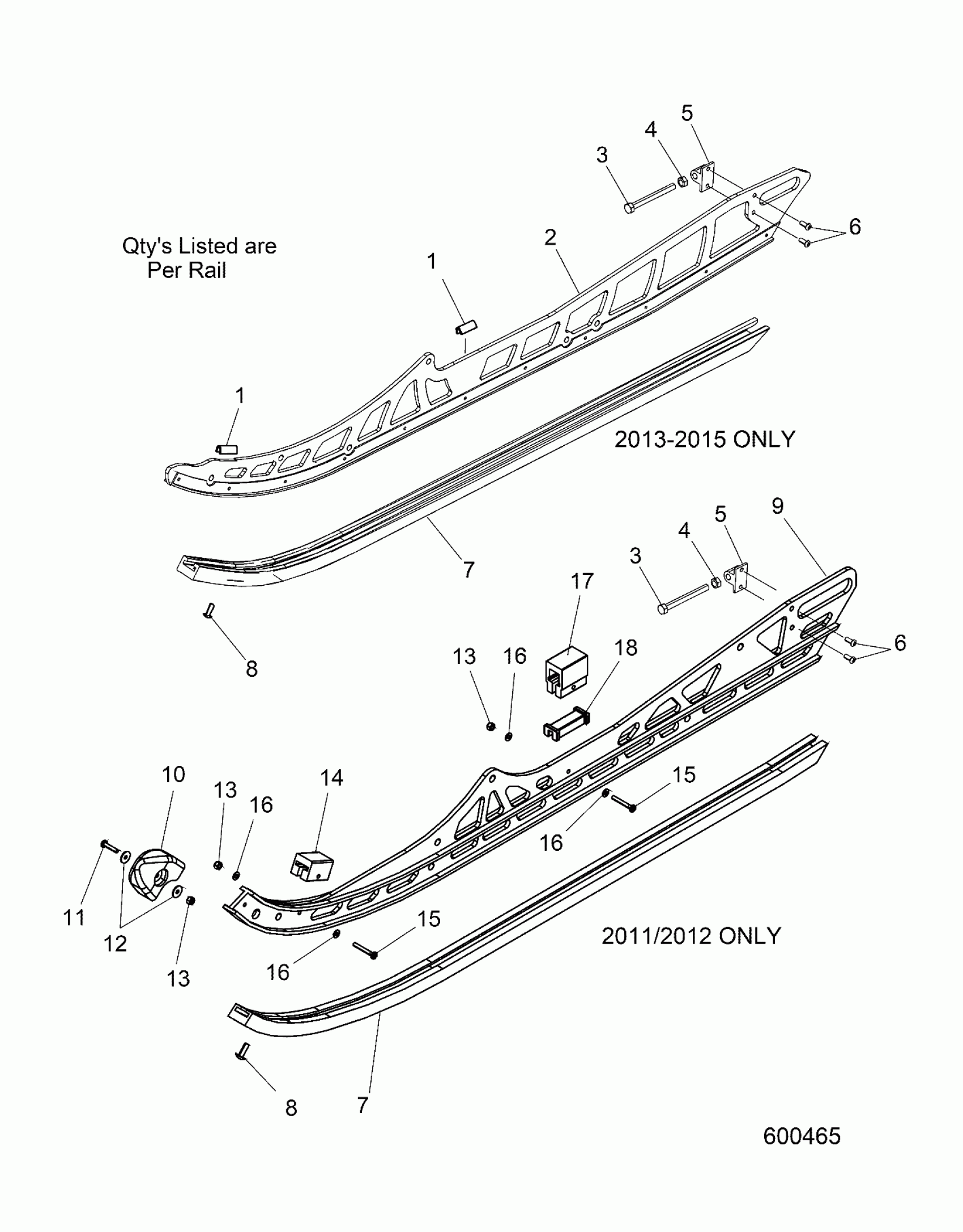 Polaris 2011 SUSPENSION, RAIL ASM. (LH,RH) - J11-J15 ALL OPTIONS (600465) Diagram