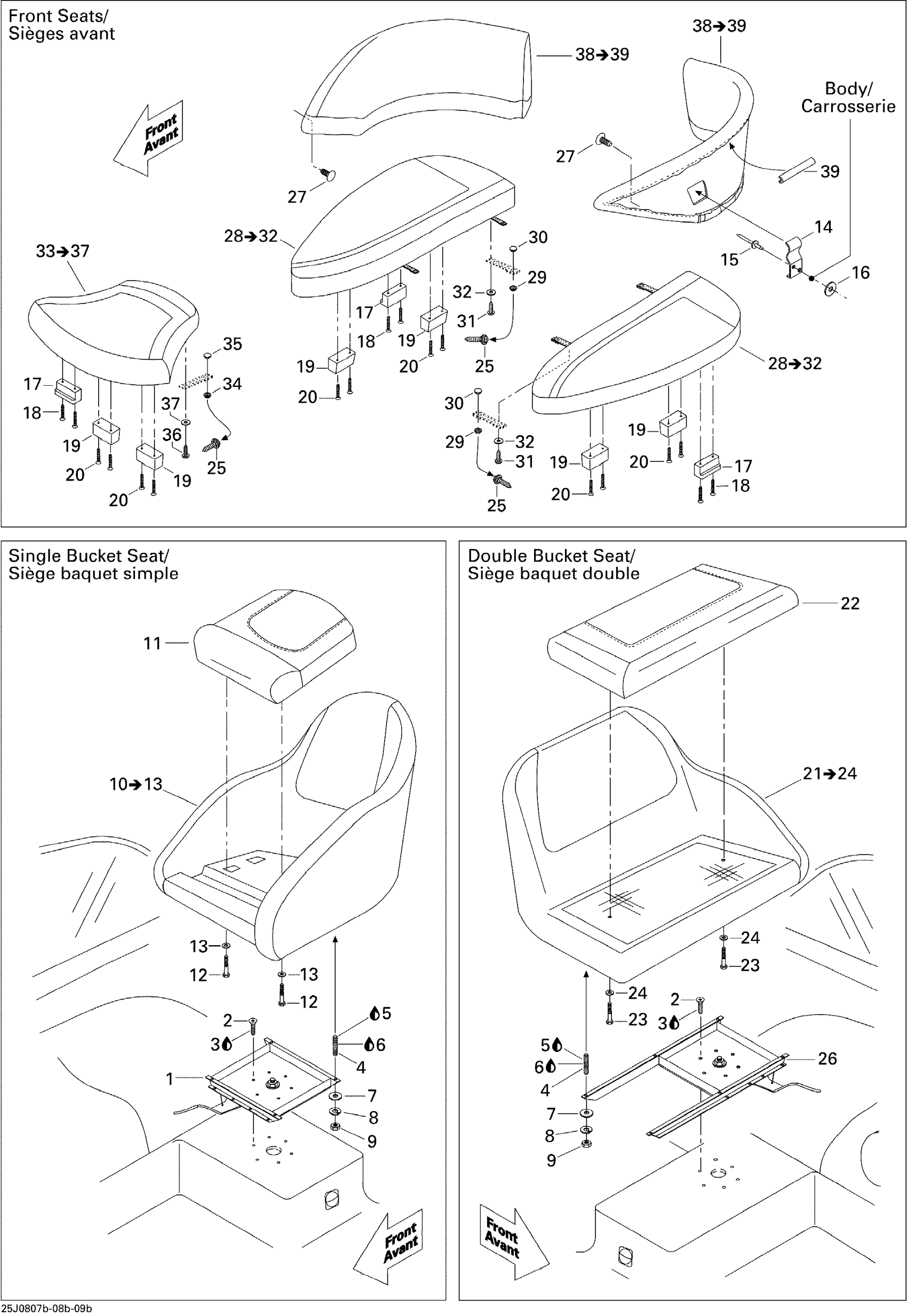 Double Bucket Seat Ass'y, Port Side | Includes 21 to 24