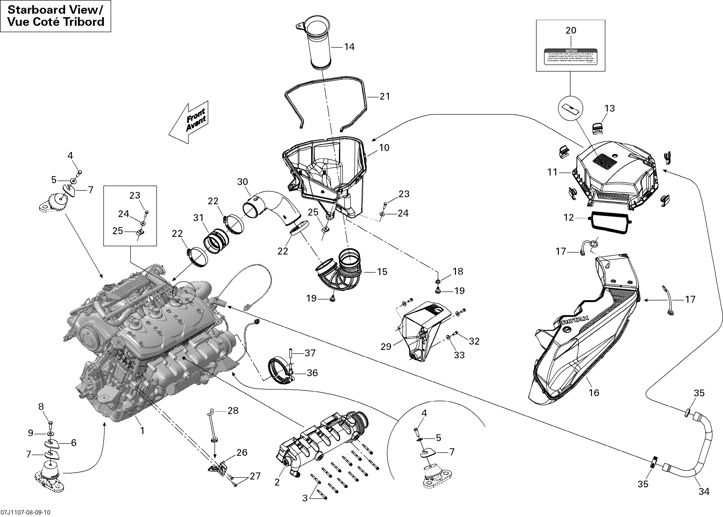 Sea-doo 210 Challenger SE 310, 2011 01- Engine And Air Intake Silencer Diagram