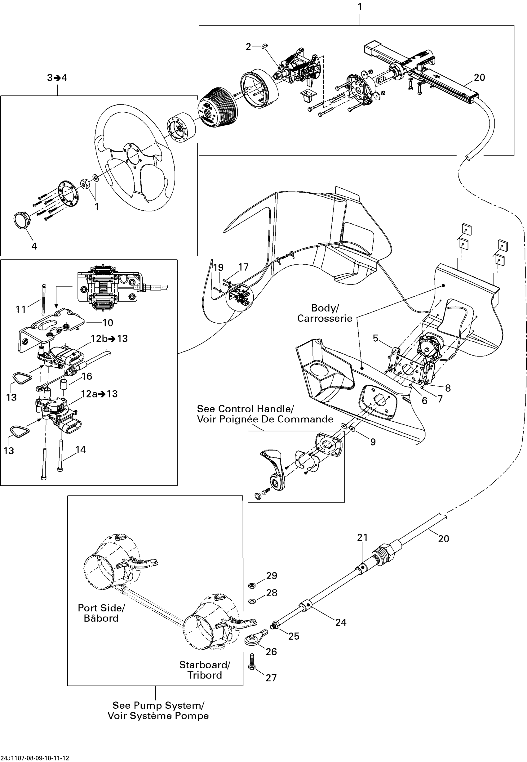 Sea-doo 210 Challenger SE 310, 2011 07- Steering Diagram