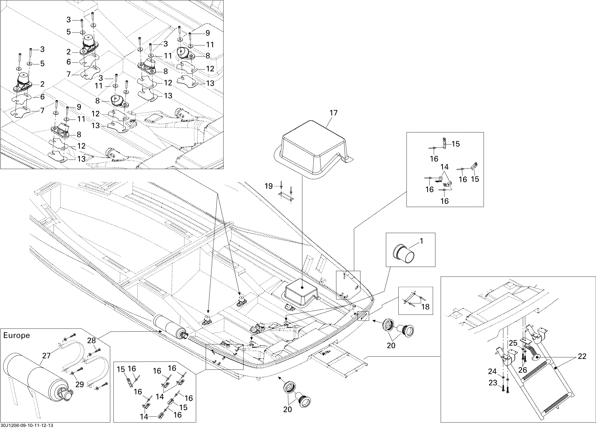 Sea-doo 210 Wake 430, 2012 09- Lower Hull And Ladder Diagram