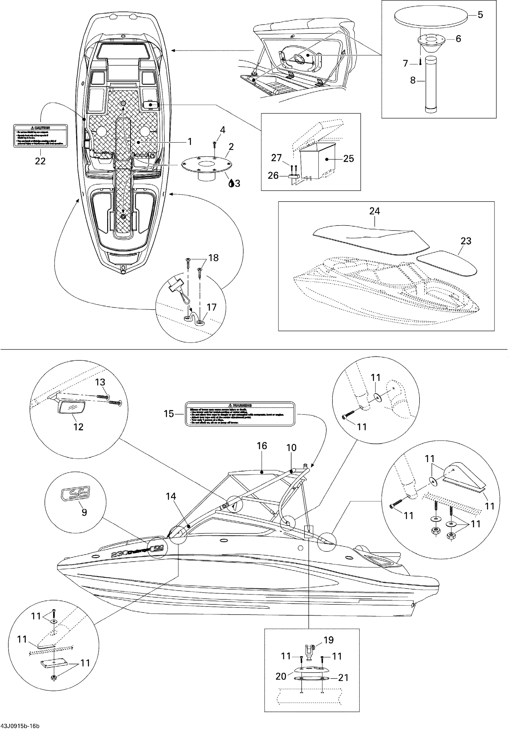 Sea-doo 230 Challenger SE, 2 x 215 SCIC, 2009 09- Tower And Bimini Top Diagram
