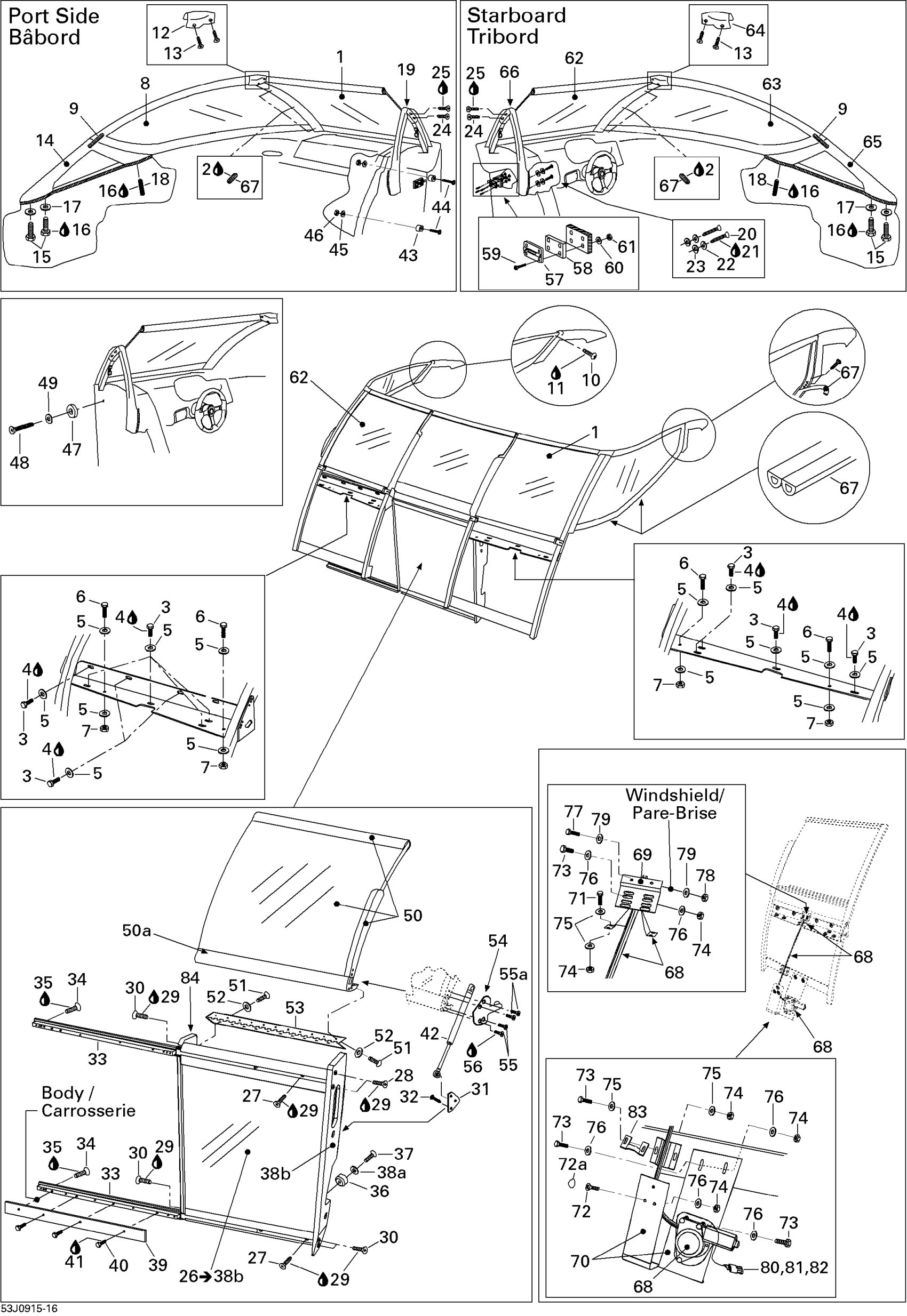 Sea-doo 230 Challenger SE, 2 x 215 SCIC, 2009 09- Windshield , Retractable Diagram