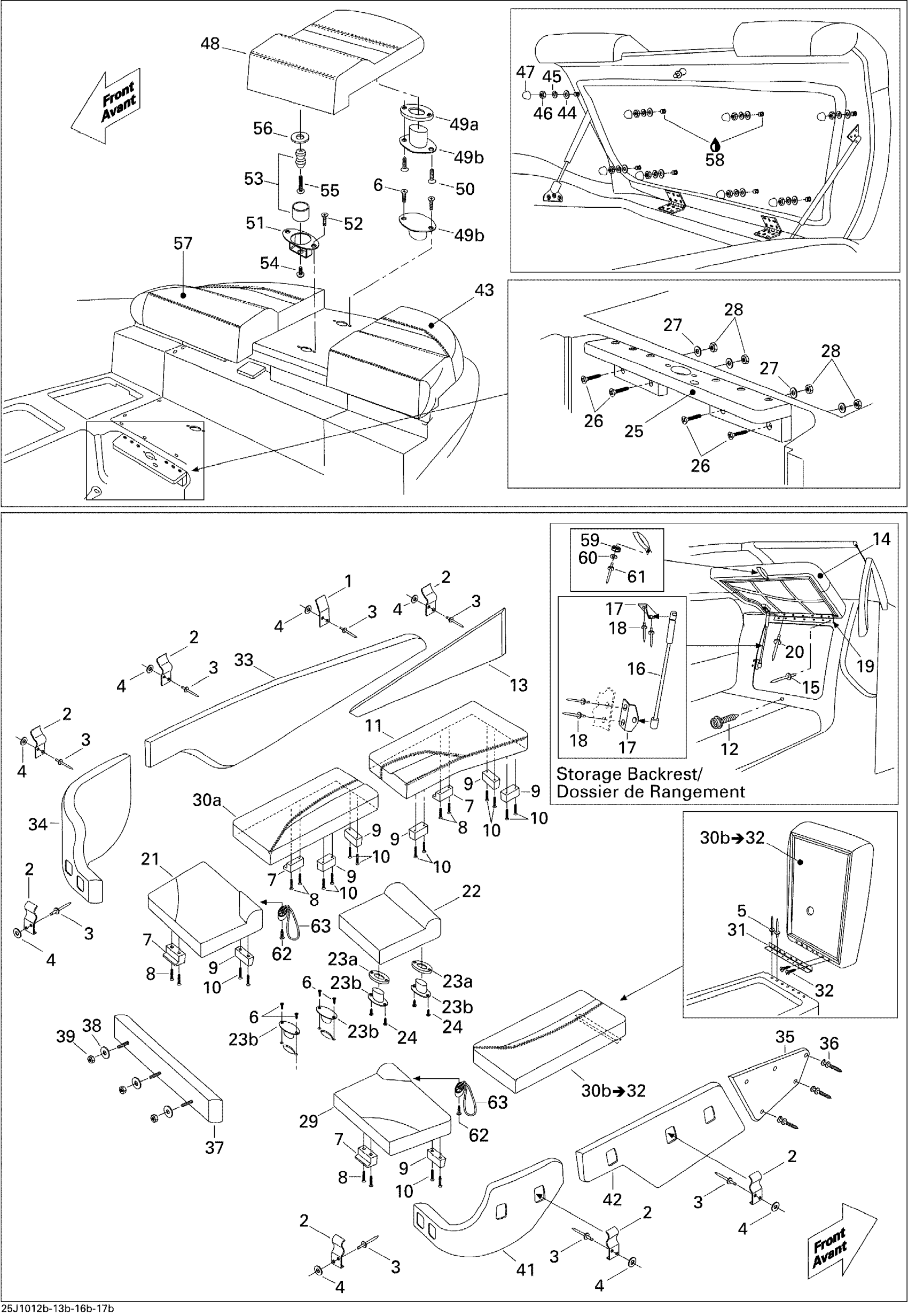 Sea-doo 230 Challenger SP 430, 2x215 1503SCIC, 2010 09- Seat, Rear View Diagram