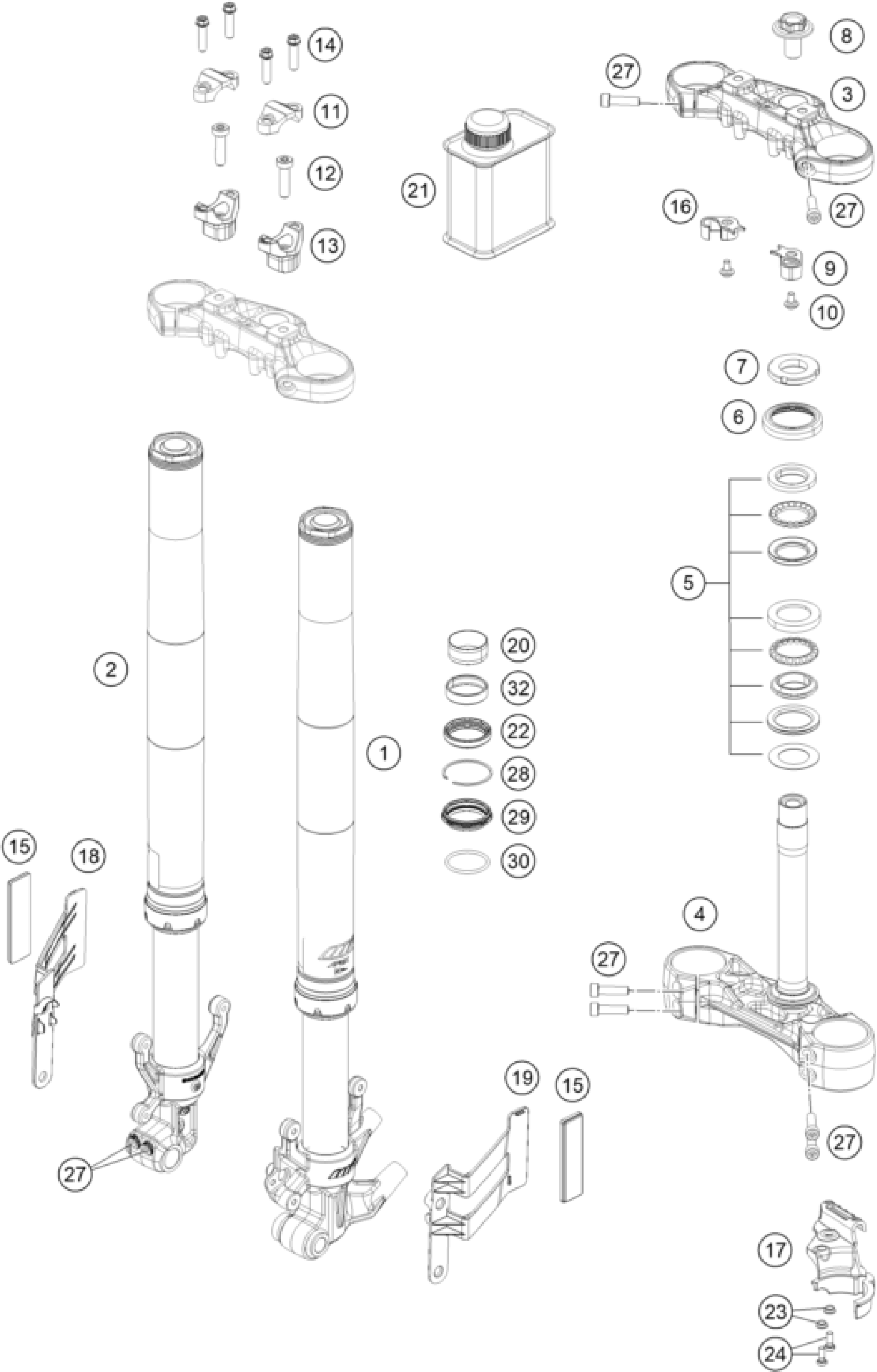 FRONT FORK, TRIPLE CLAMP