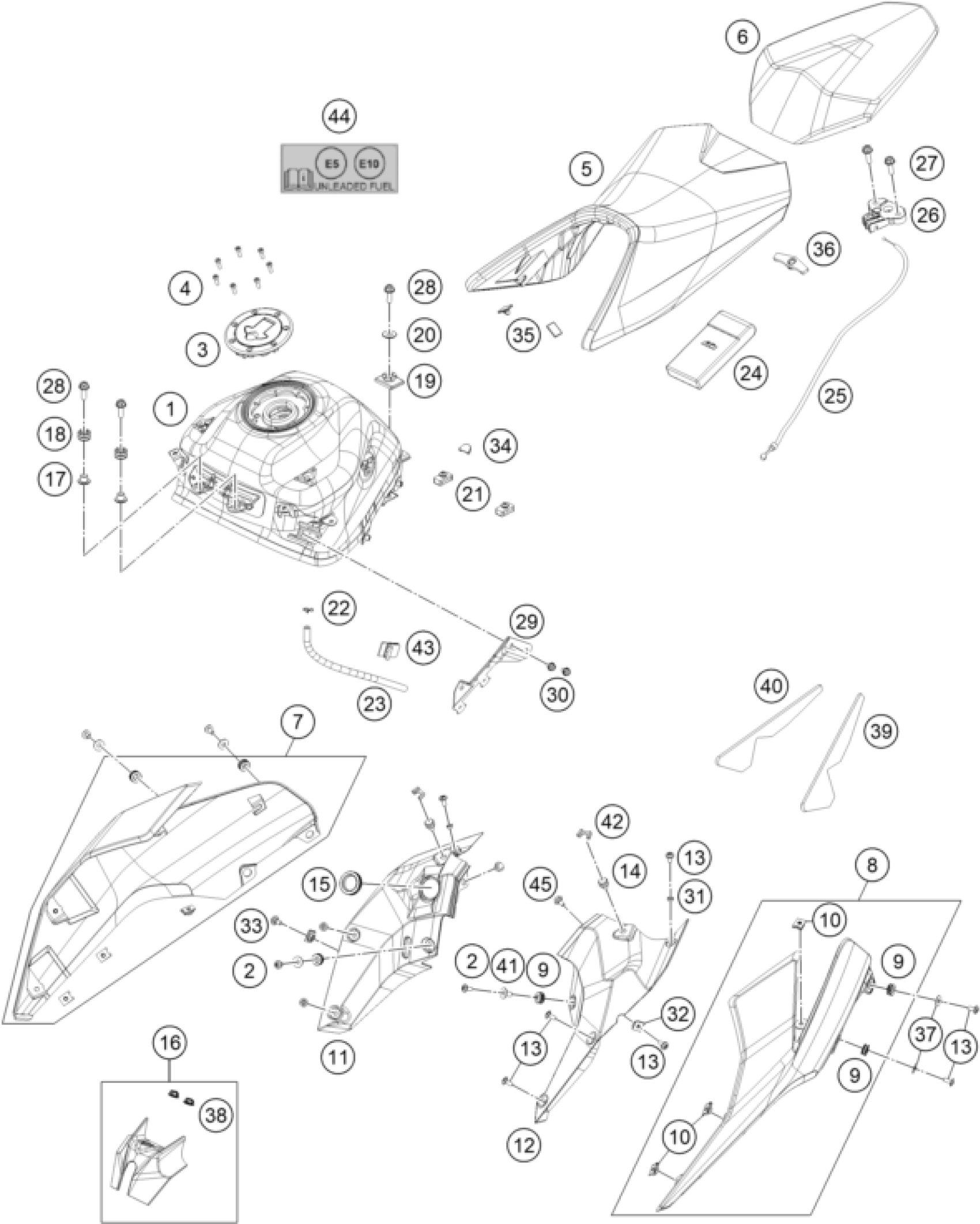 KTM 250 Duke, orange 2019 TANK, SEAT Diagram