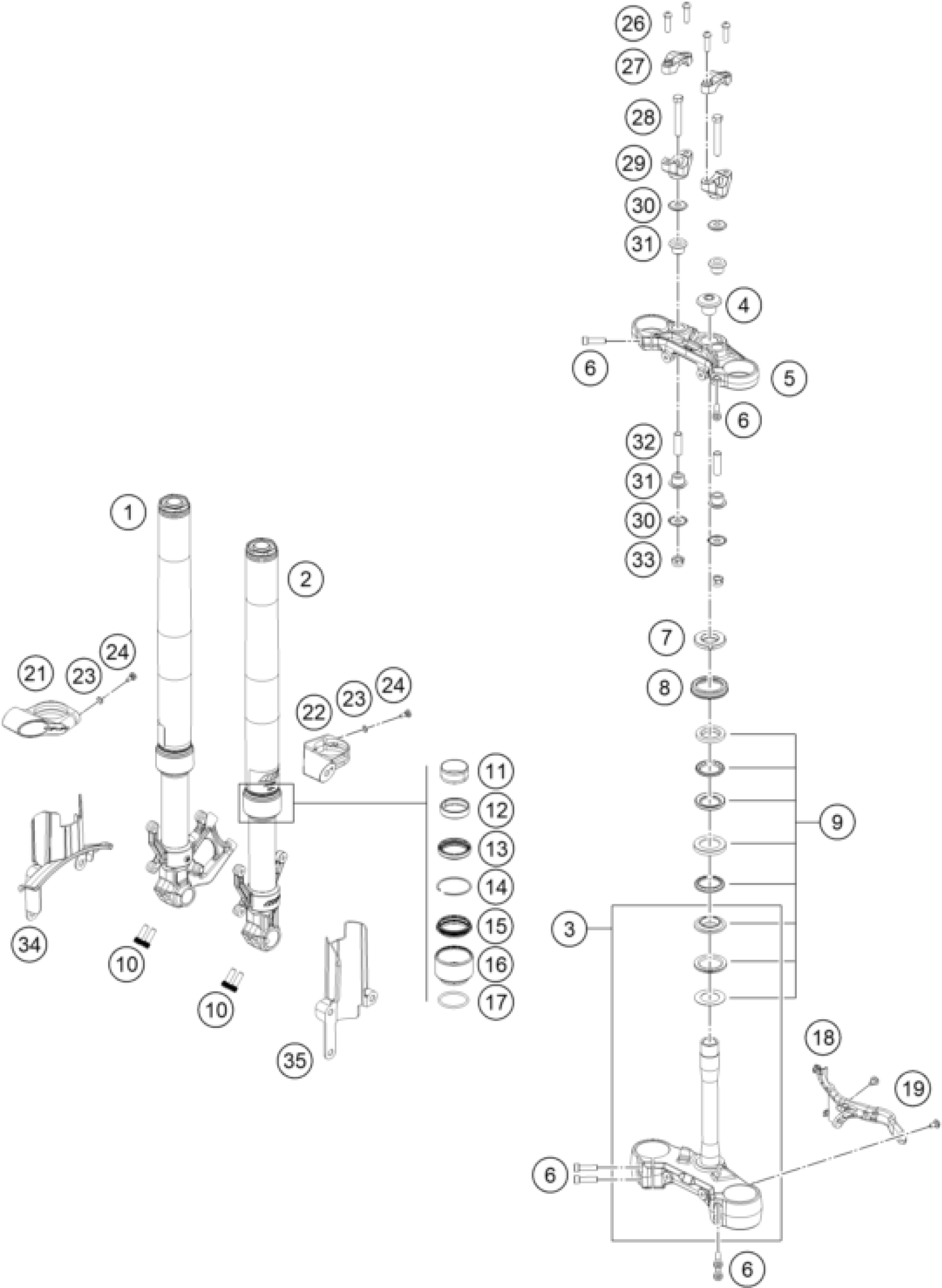 FRONT FORK, TRIPLE CLAMP